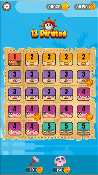 13 Pirates is a fun puzzle game for all ages where you have to play a game with pirates. The essence of the game is that you need to click on groups of similar numbers so that they are gathered into a square with a certain number. The more cells you collect into a square, the faster the value of the square will increase. Try to get the number 13 and thereby defeat the pirates, who absolutely do not want to lose in this game. Complete interesting tasks presented in the game and get unlimited bonuses. Play and compete with your friends for the best results.
