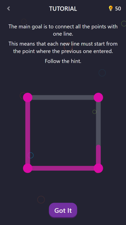 Line & Dots is an easy way to get brain training exercises every day. This is a big mind complex game with simple rules. Just try to connect all the dots with just one click of a button.