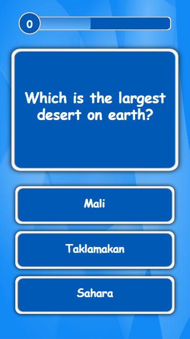 Quiz Game is a HTML5 game with free general knowledge quiz questions and multiple choice answers.