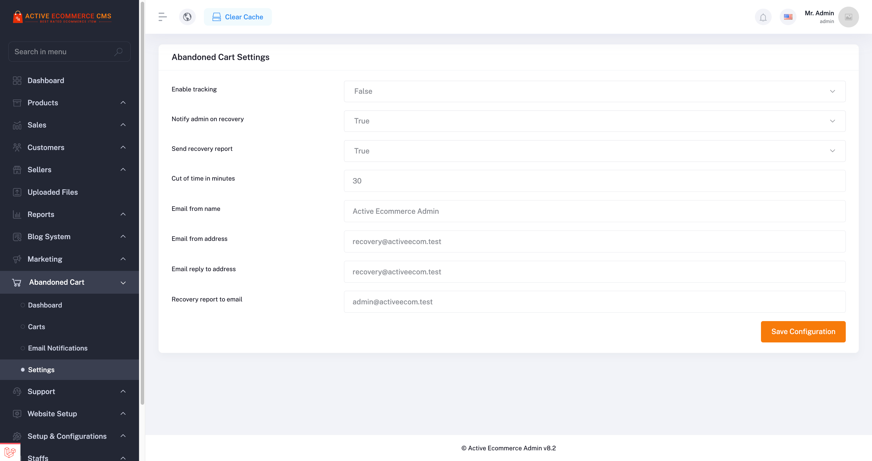 Active eCommerce CMS with Abandoned Cart Addon: Demo Link