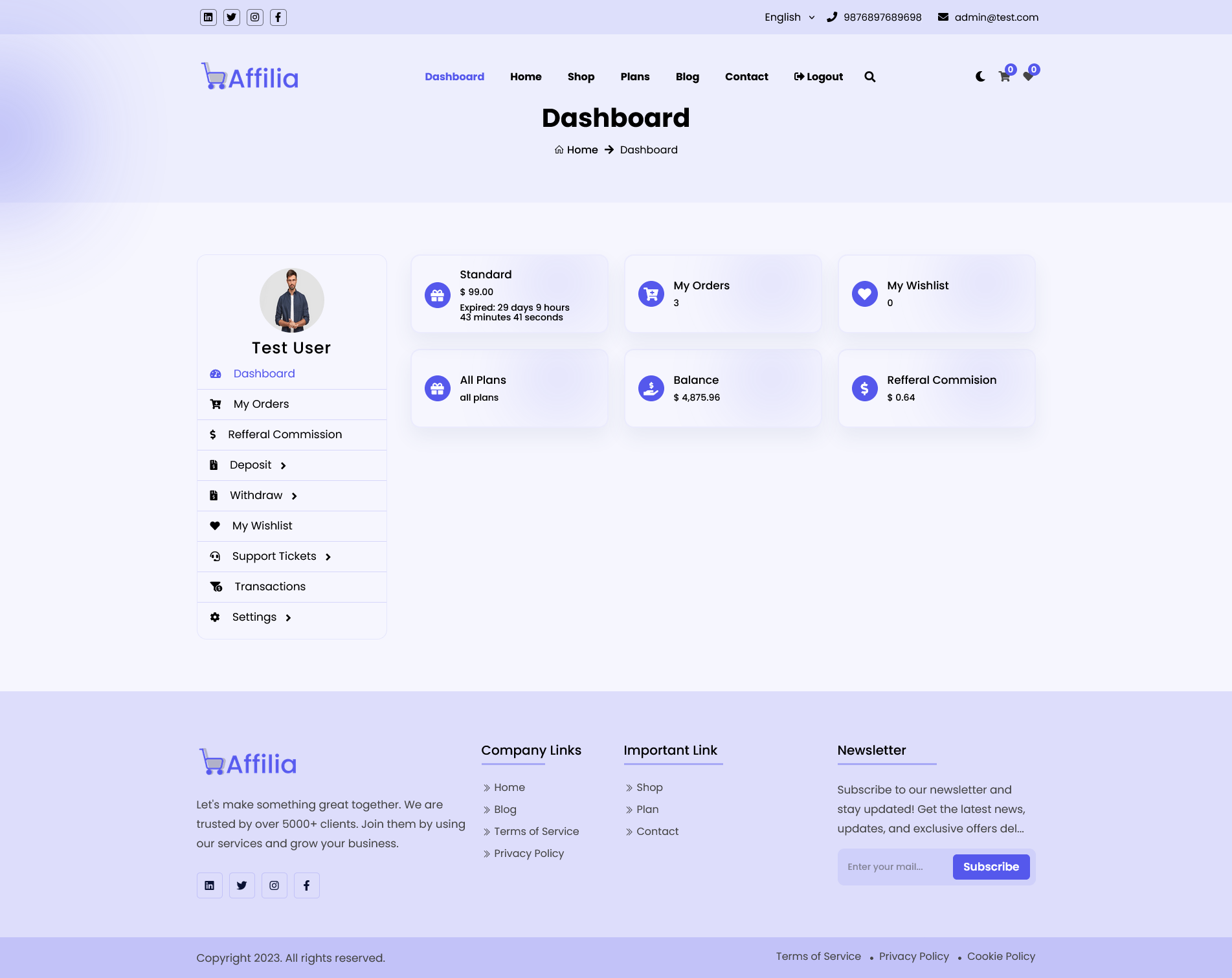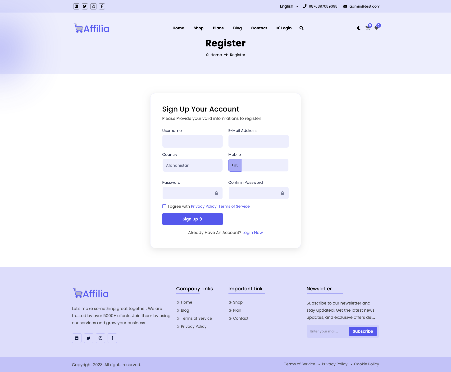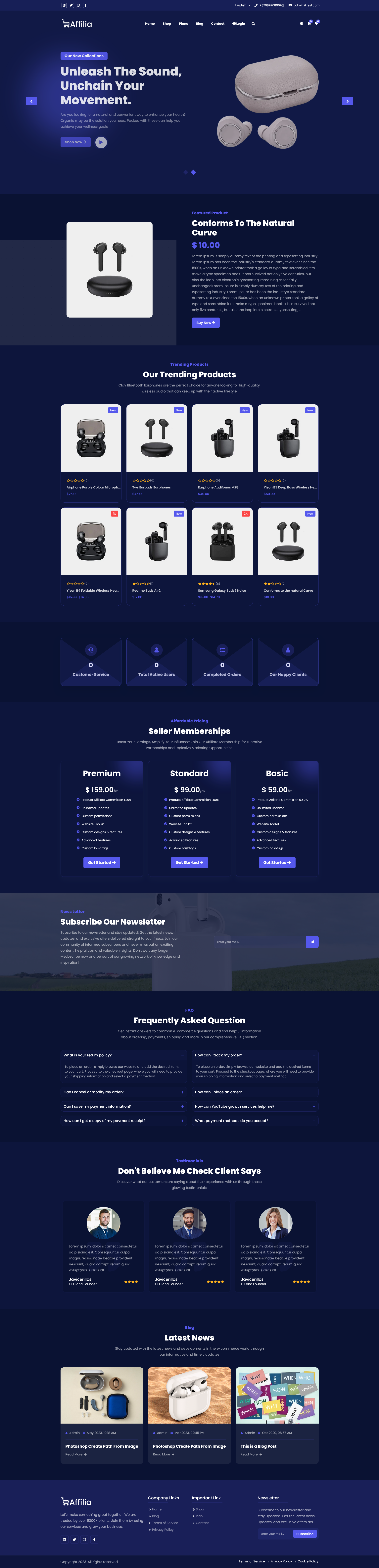 Welcome to Affilia, an innovative affiliate e-commerce platform developed using Laravel, designed to empower sellers like you. With Affilia, you can easily purchase membership plans, allowing you to dive right into the world of product affiliation and seize lucrative business opportunities.