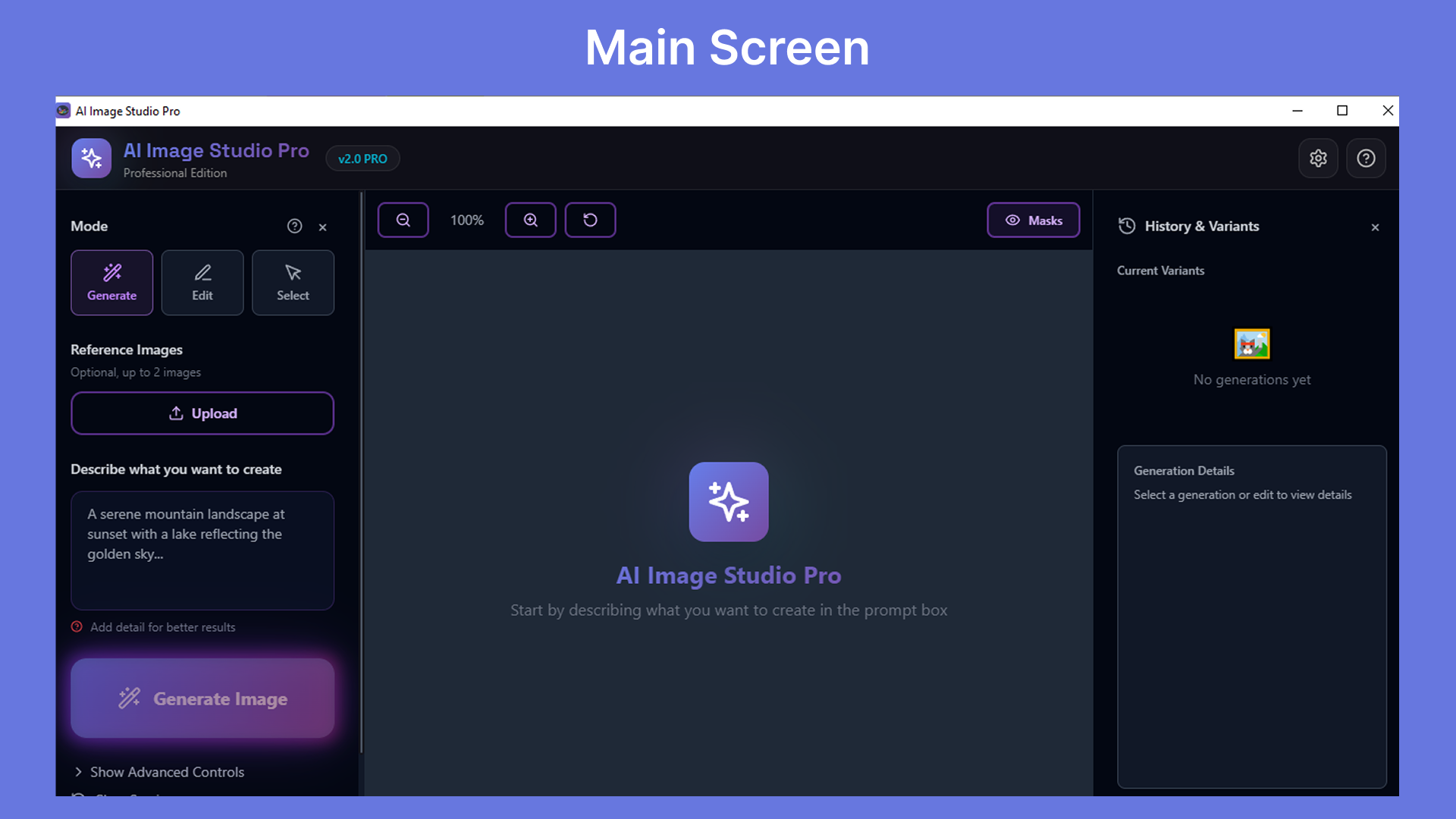 AI Image Studio Pro brings next-generation AI image generation and editing to your desktop — powerful, elegant, and designed for professionals.