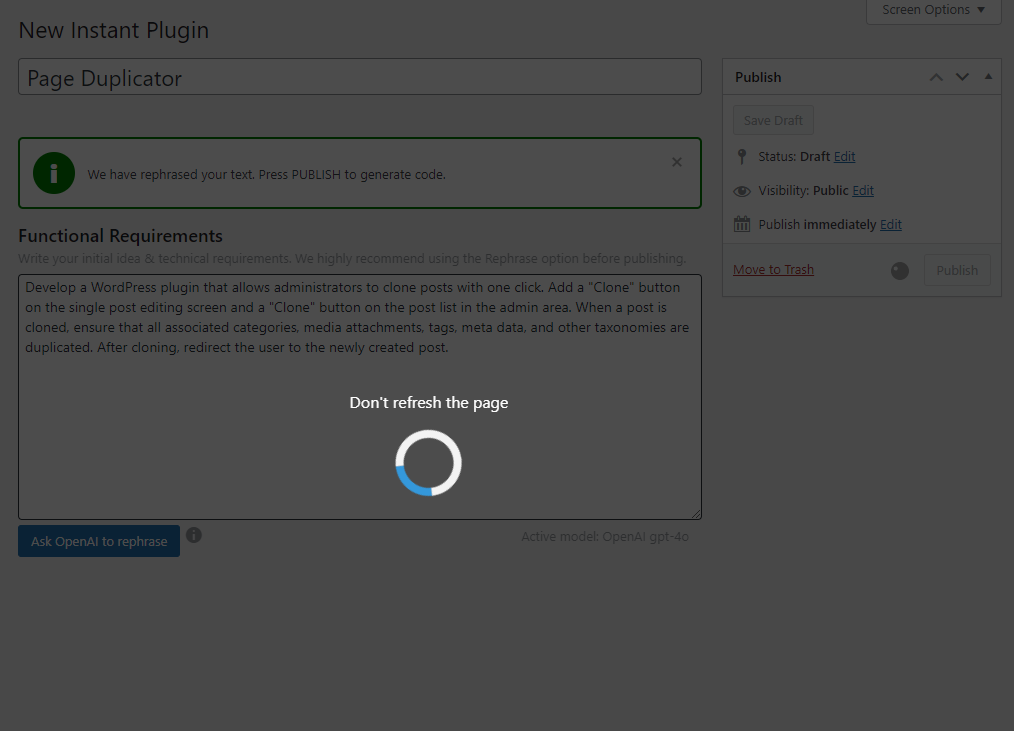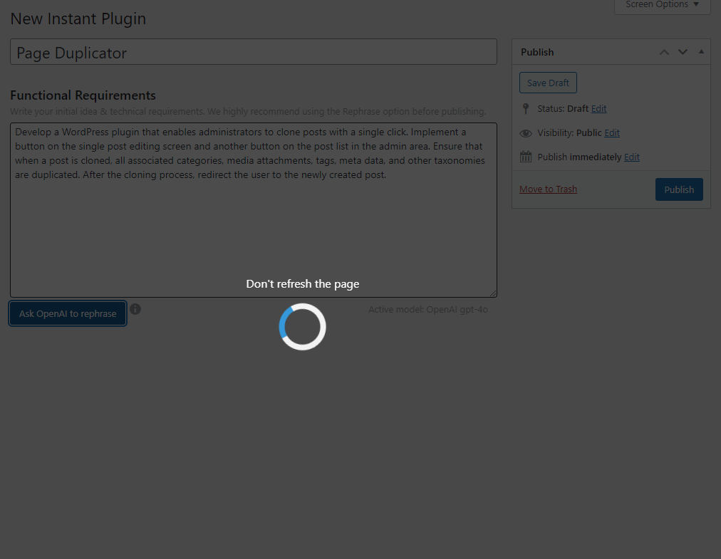 Transform your WordPress experience by using our revolutionary new AI powered* plugin – AIKO! Designed for easy use, AIKO empowers you to create new instant custom plugins in a few minutes.