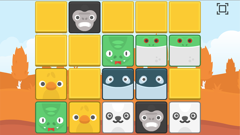 - ‘Hard’: The player must match 10 pairs of animal cards.