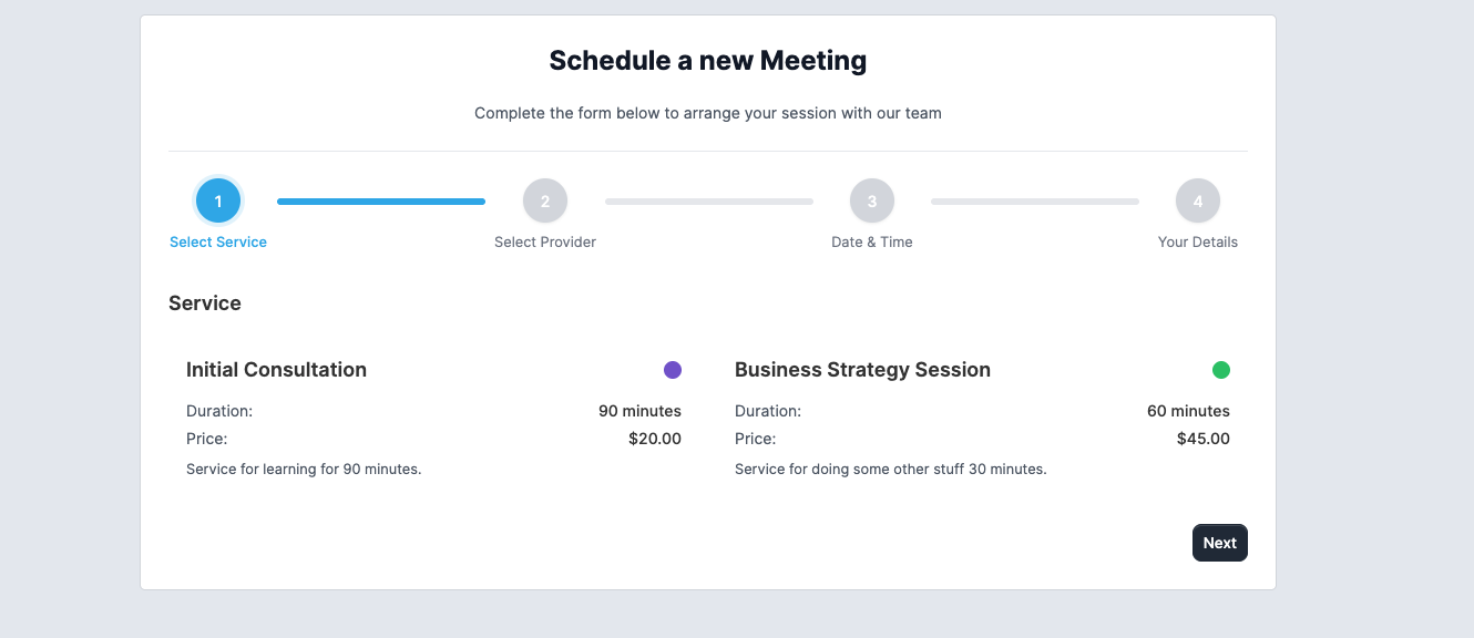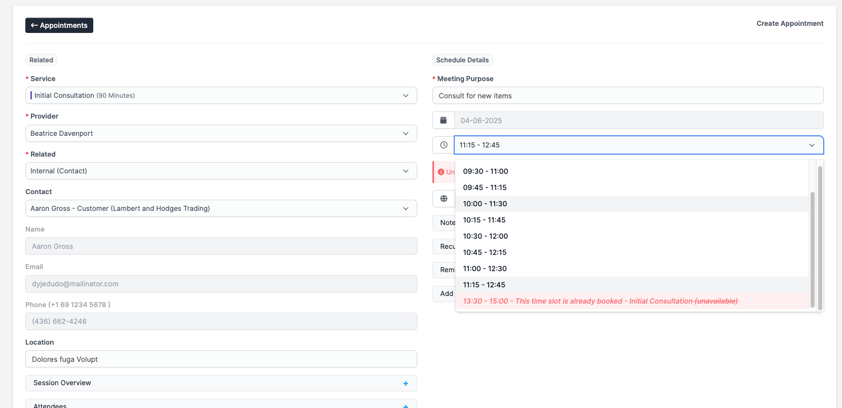- Service-Based Appointments: Link appointments to specific services with pricing, duration, and provider assignments
