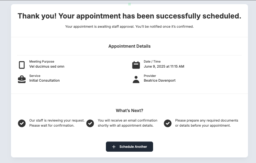 - Appointment Approval System: Optional approval workflow for appointment requests