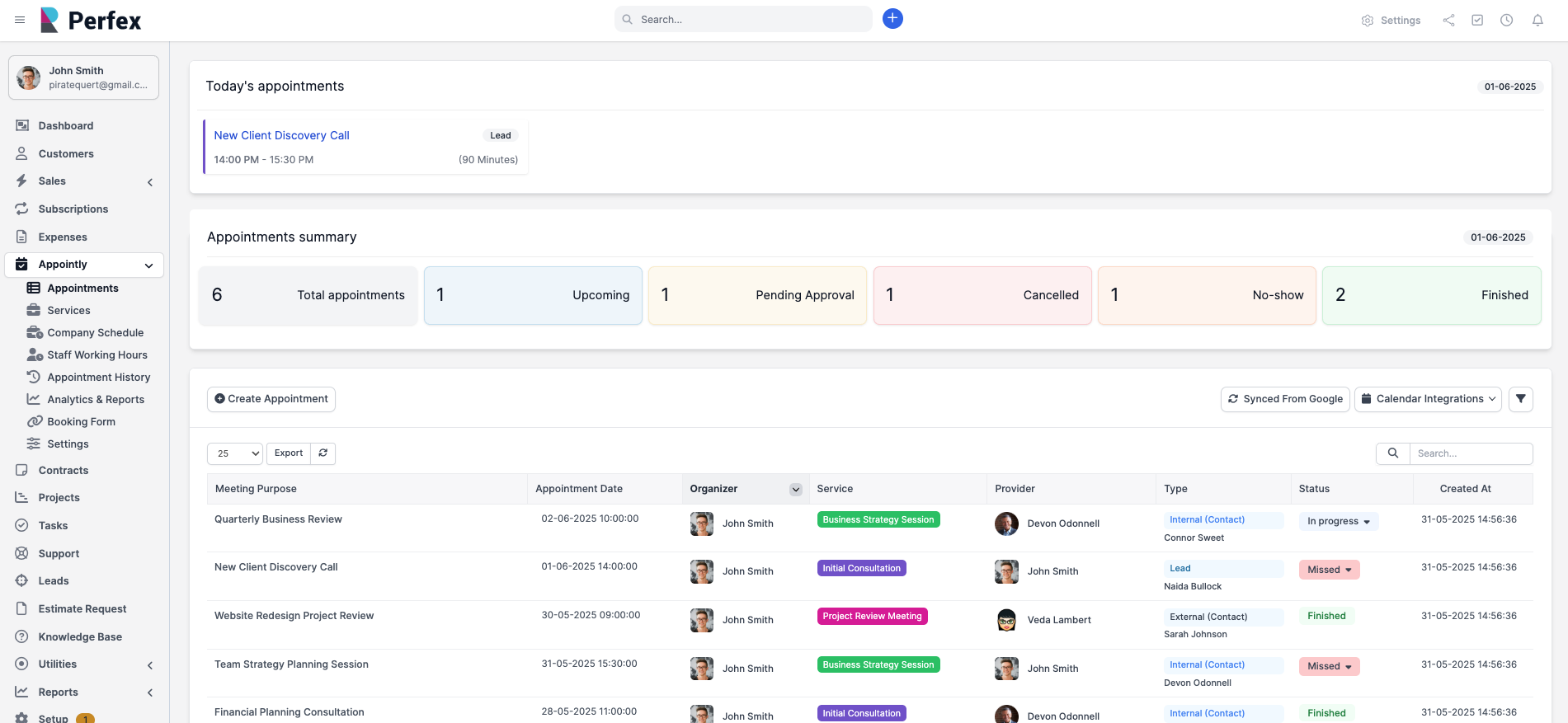 Transform your Perfex CRM with the most advanced appointment booking system featuring Google Calendar sync, Outlook integration, and powerful analytics dashboard.