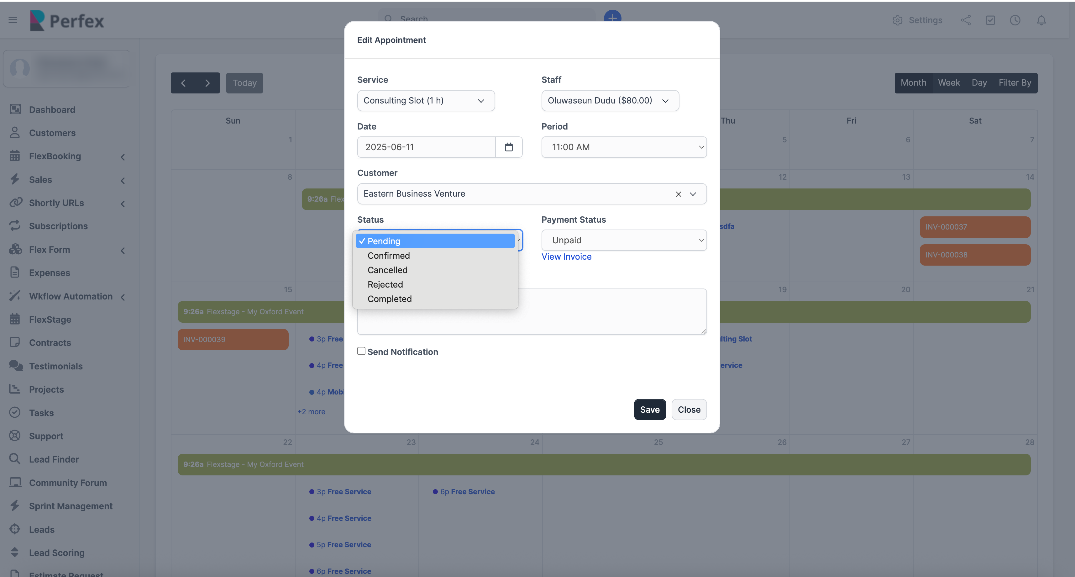- Client-First Features : Client can book appointments, view bookings, cancel bookings(if allowed by staff) with Invoice Integration