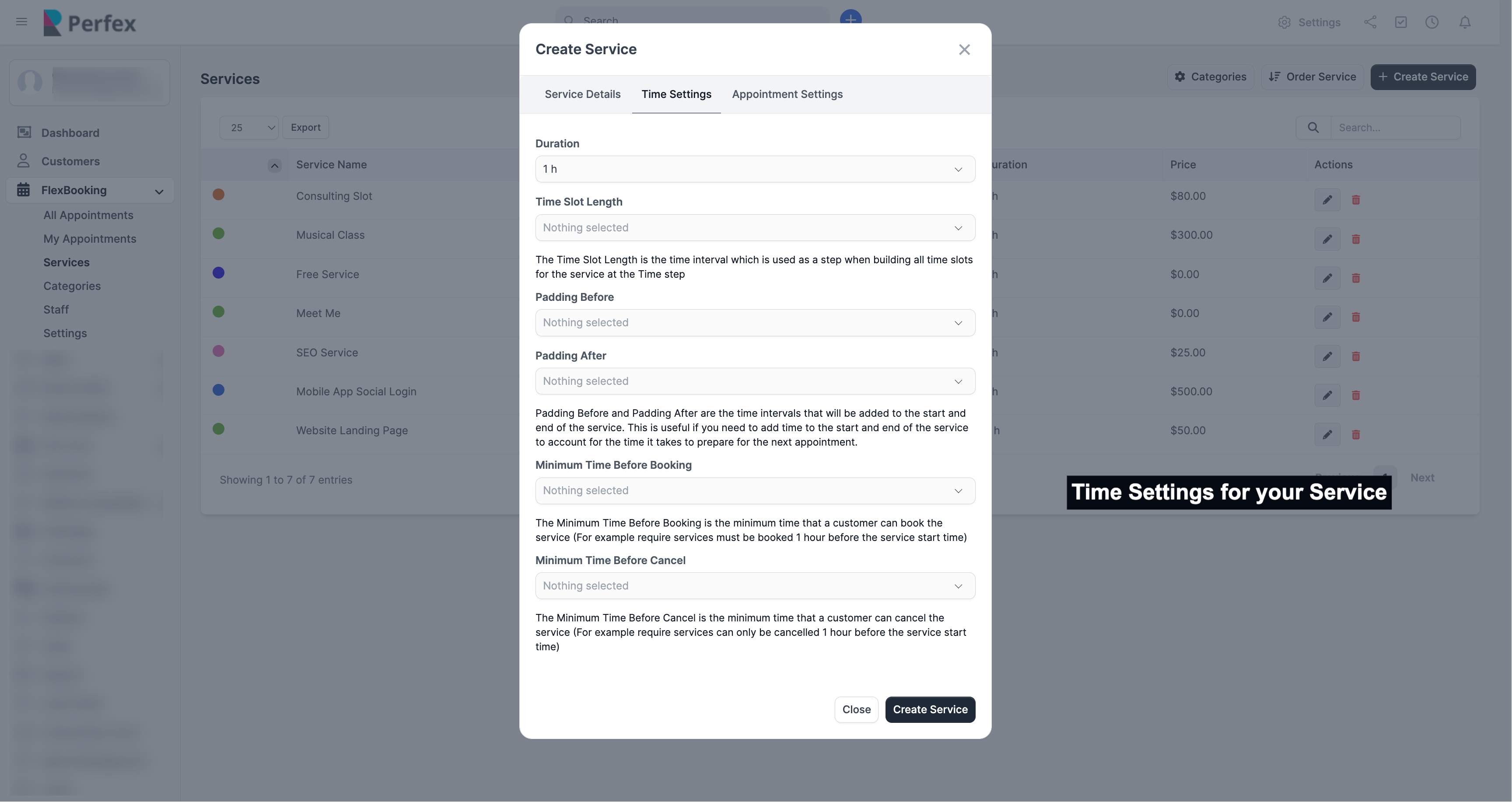 - Intelligent Service Management : Create Staff Booking services with prices, customizable time slots with padding support