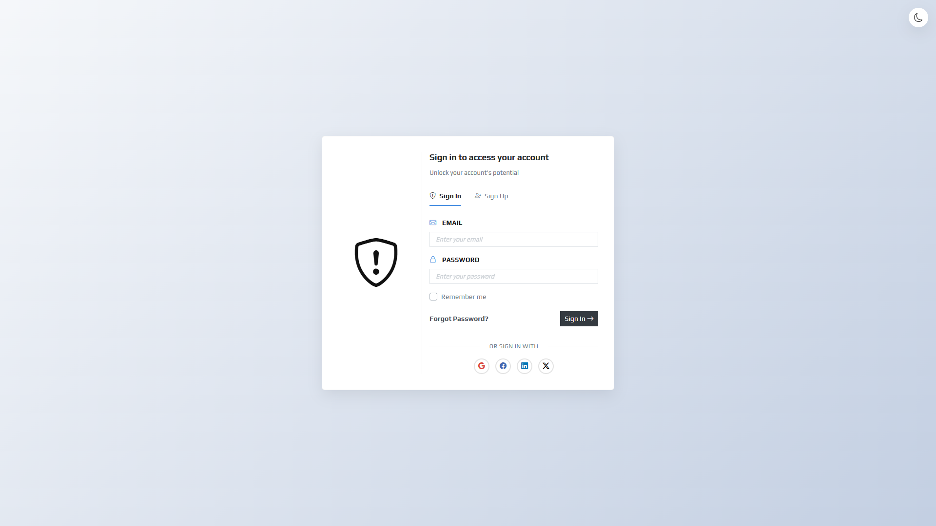 - Social Login Integration – Ready-to-use buttons for Google, Facebook, LinkedIn, and X (Twitter)