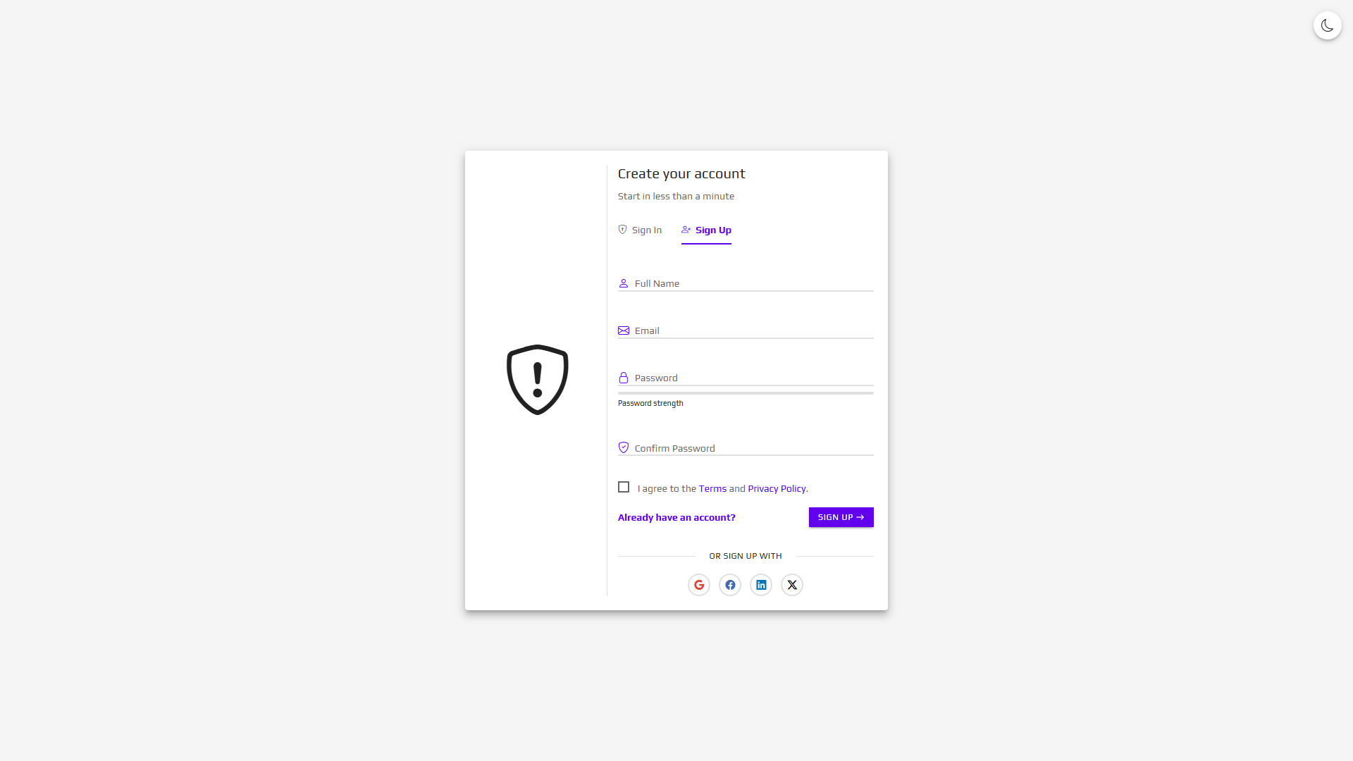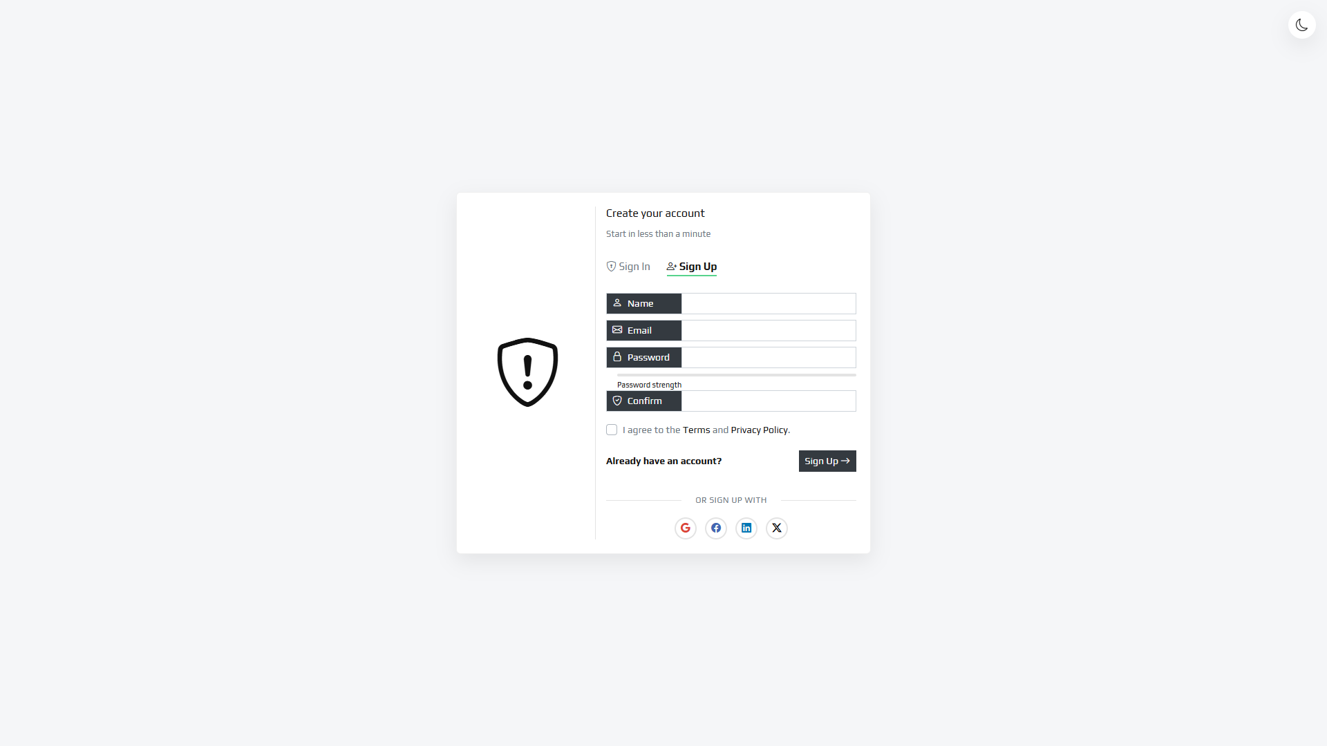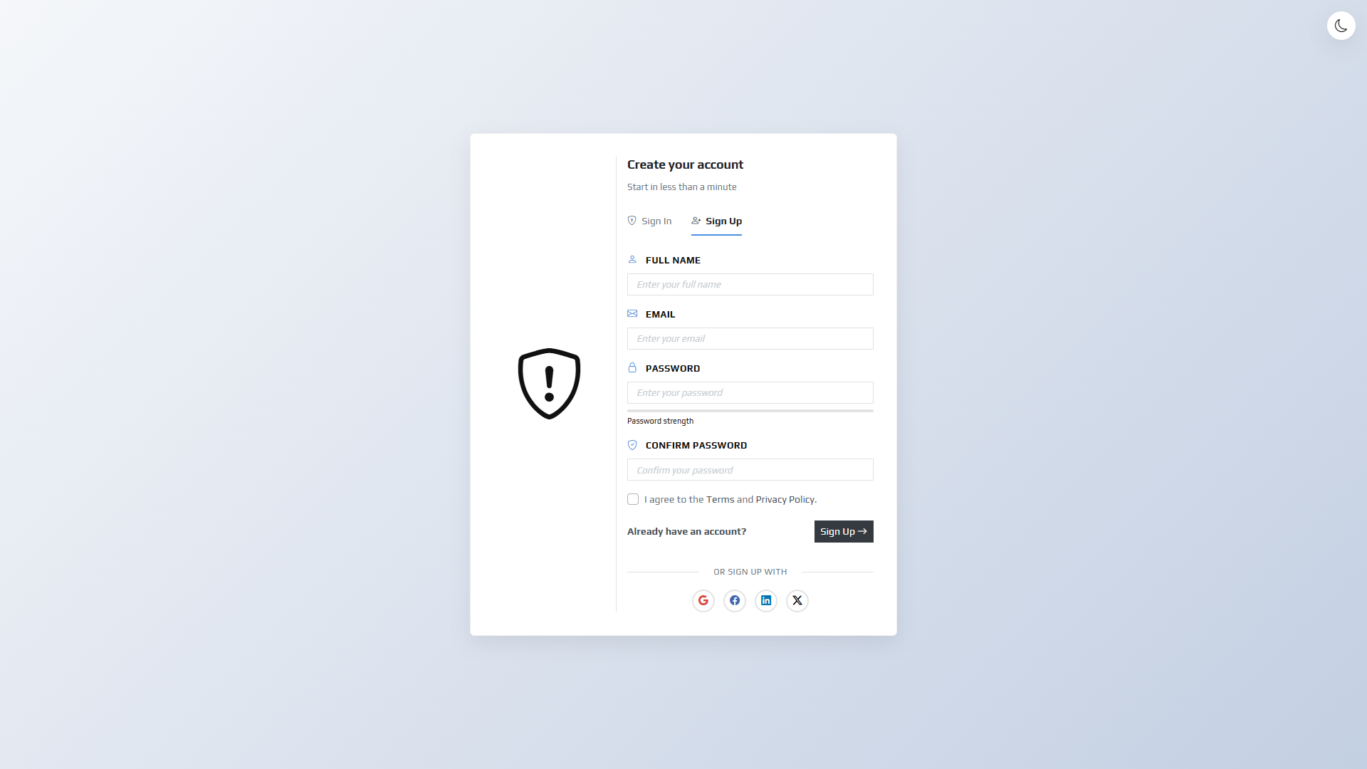 - Social login buttons (Google, Facebook, LinkedIn, X)