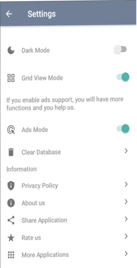 - Mode ads and dark mode