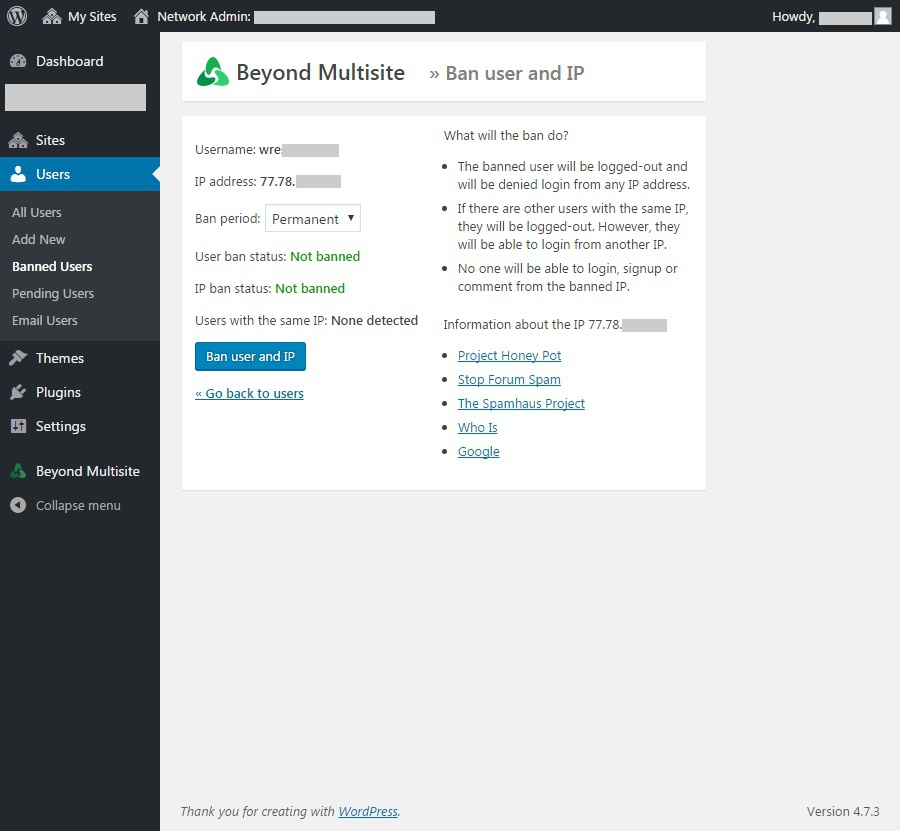 Ban users and their IP address