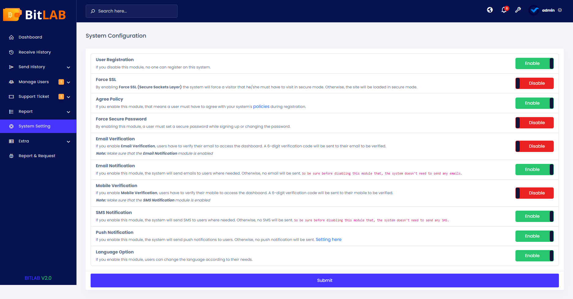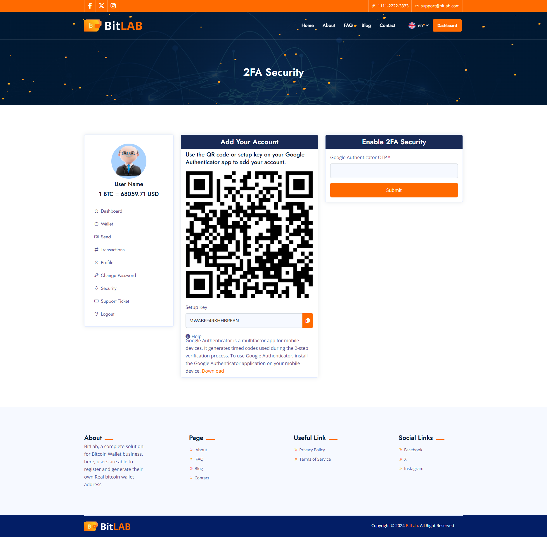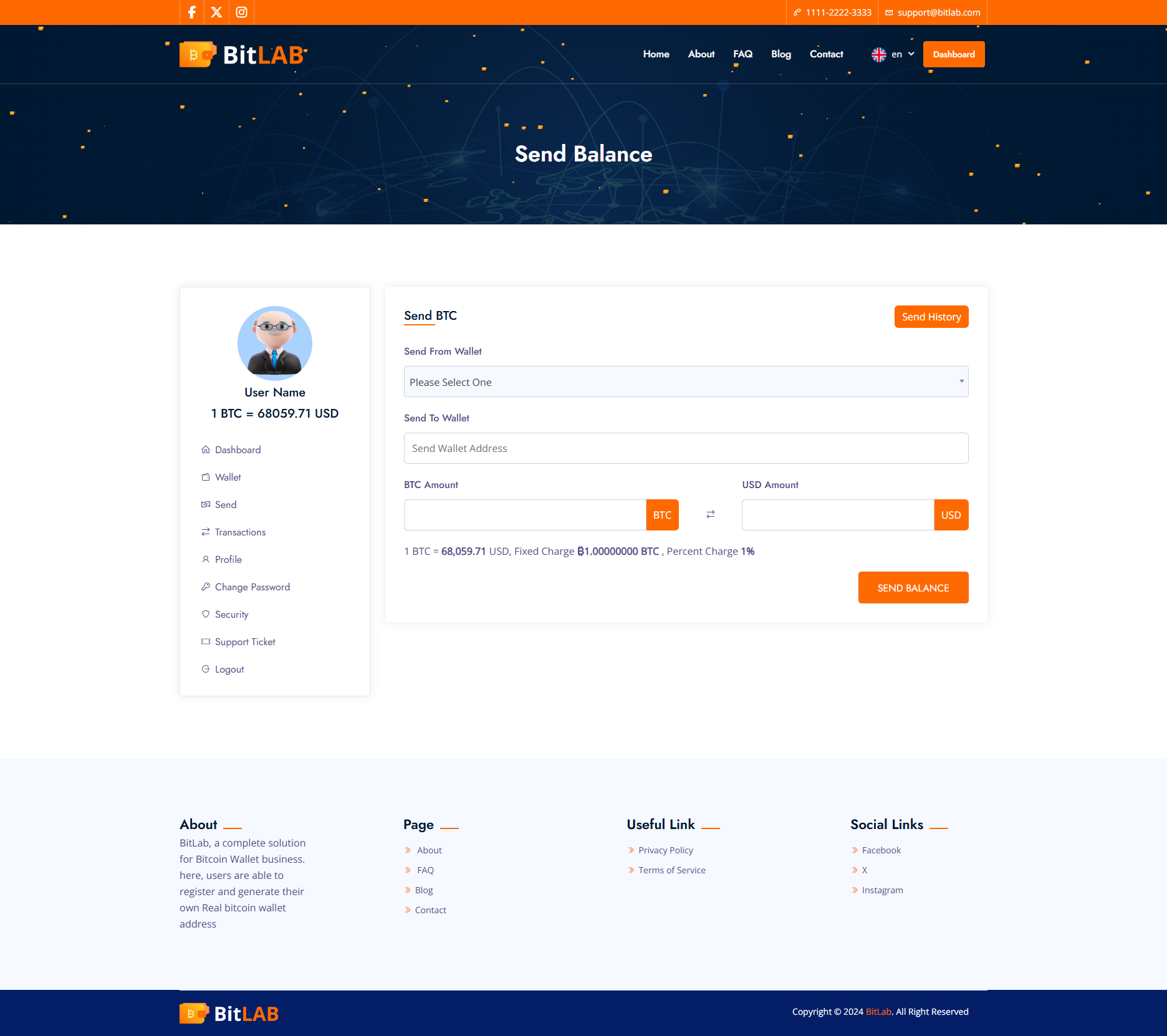 BitLab, a complete solution for Bitcoin Wallet business. here, users are able to register and generate their own Real bitcoin wallet address, users are able to receive and send bitcoin here to anywhere. admin will earn from fixed and percentage-based sending charges. all bitcoin wallet accounts will be generated via Block IO APIs.