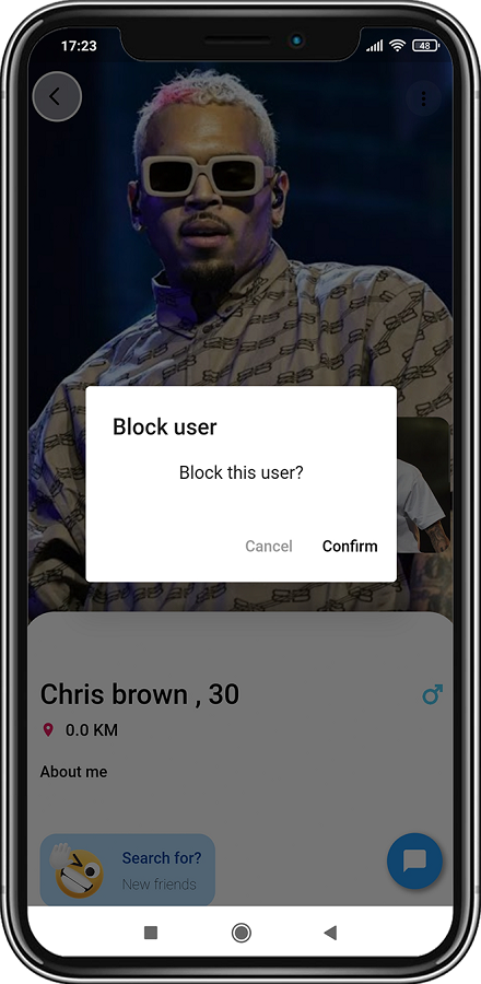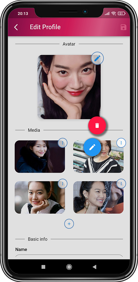 - Update profile like avatar, medias, name, bio, looking for, gender, birthdate, interests, passions, current location, change email, password, unblock users.