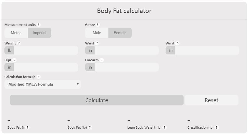 Great, unique Body Fat Calculator Script with multiple formulas, styles and more. Probably the best Body Fat Calculator available on the whole internet right now. Don’t take my word, convince yourself!
