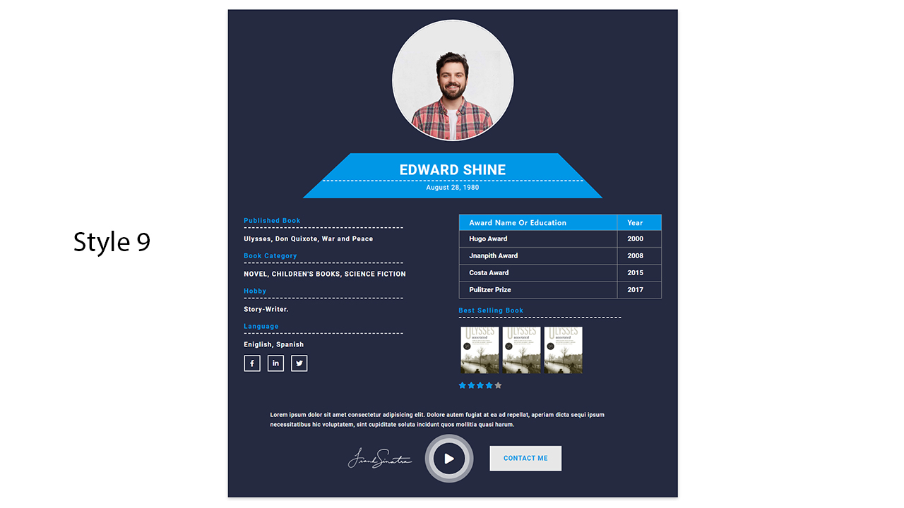 - Book Author Bio – Book Author Bio is a lightweight Elementor-based WordPress plugin to add an attractive Author Biography to your website. 15+ unique preset bio styles look awesome.