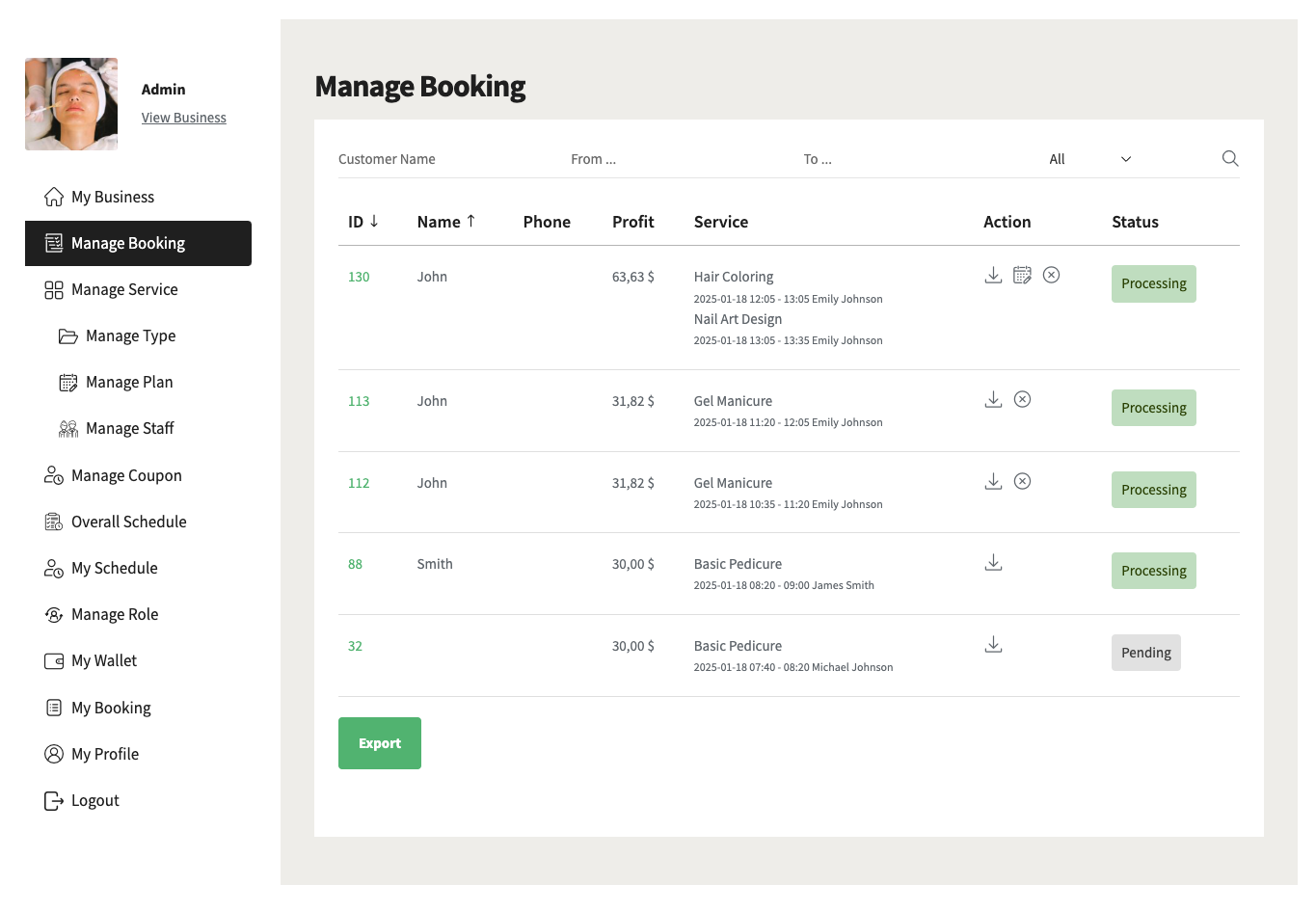 Offer an intuitive interface, ensuring ease of use for users of all technical skill levels. The dashboard allows users to add unlimited services, manage bookings, and oversee employee schedules directly from the front end, eliminating the need to access the back-end system.