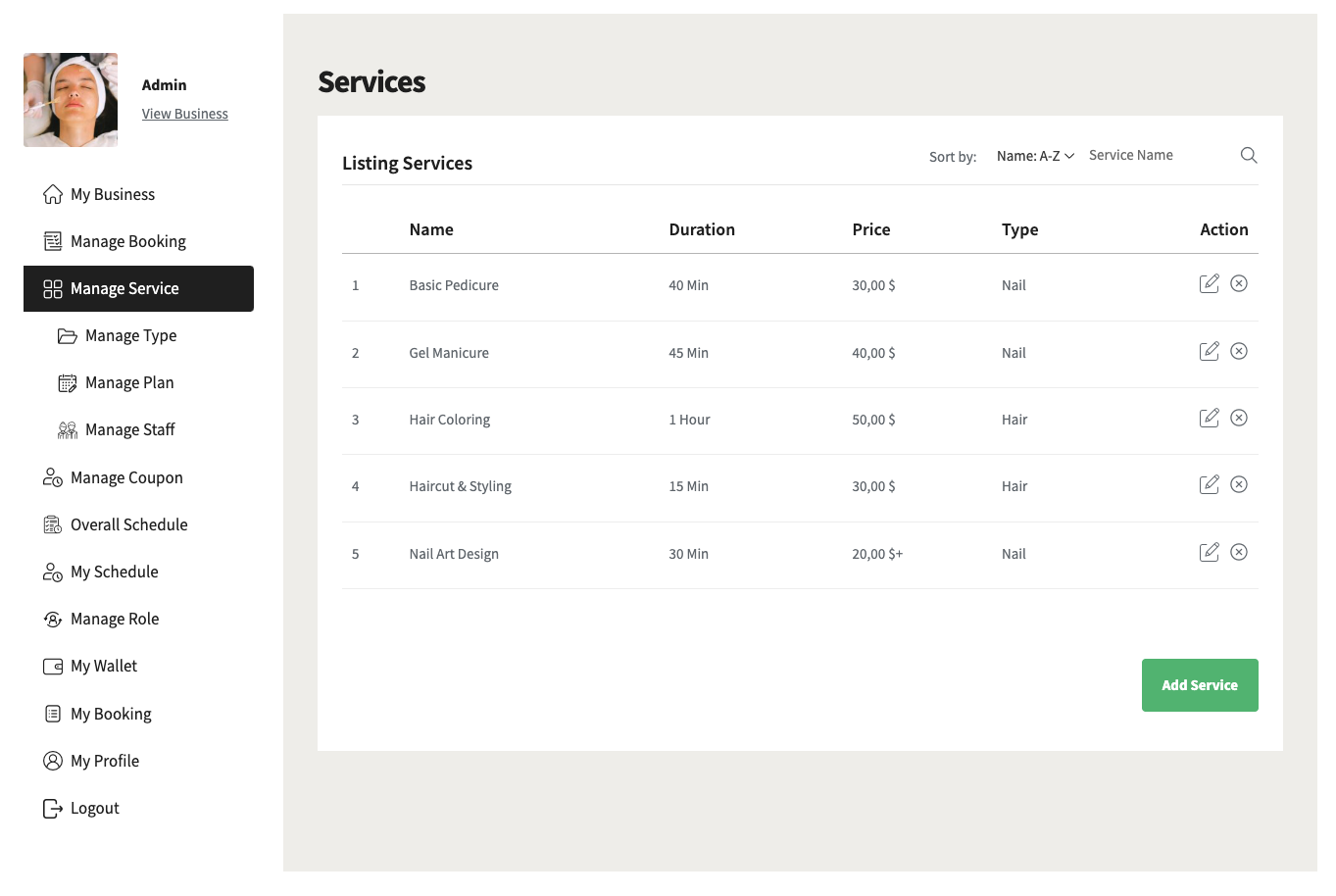 Add unlimited services, assign staff to each service and define the service duration