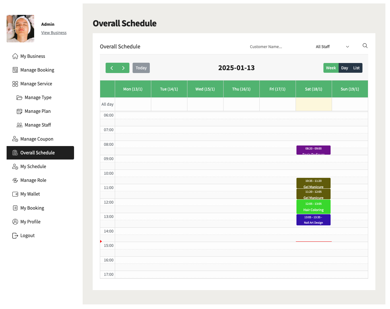 - View the schedule of each staff