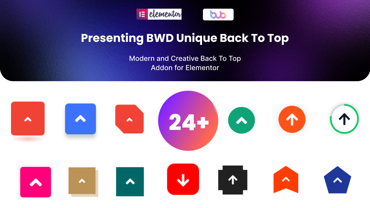 - Back to Top – BWD Unique Back to Top is a lightweight Elementor base WordPress plugin to add a back-to-top button to your website without any coding knowledge. 24+ unique preset designs look awesome.