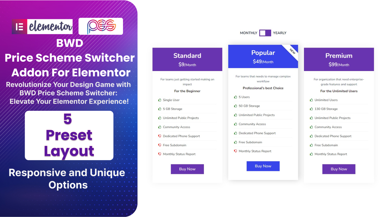 - Pricing Table – BWD Pricing Table is a lightweight Elementor base WordPress plugin to add an attractive Pricing Table to your website without any coding knowledge. 28+ unique preset animations look awesome.