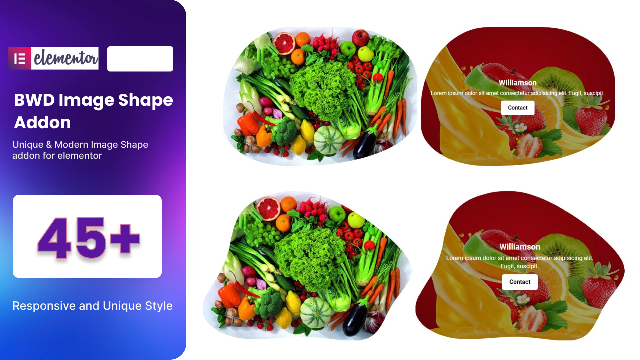 - Image Shape – BWD Image Shape is a lightweight Elementor base WordPress plugin to add an attractive Image Shape to your website. 45+ unique preset Image Shapes look awesome.