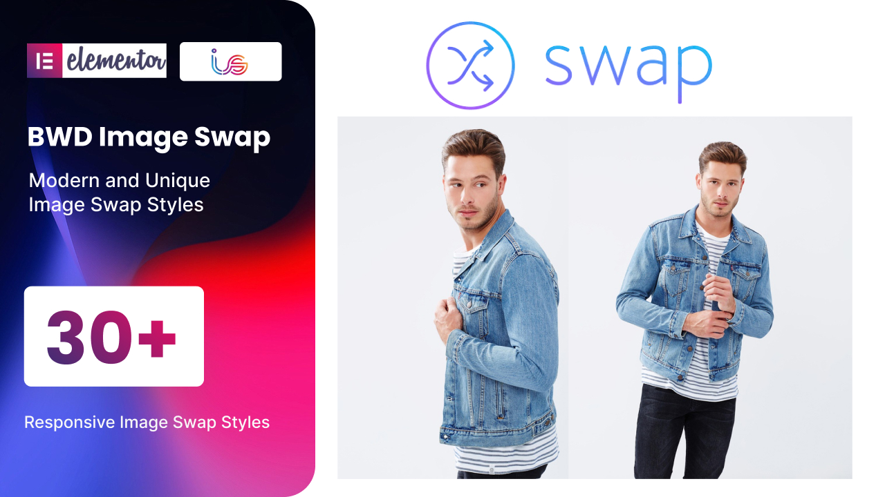 - Image Swap – BWD Image Swap is a lightweight Elementor-based WordPress plugin to add an attractive Image Swap to your website. 31 unique preset Image Swap designs look awesome.