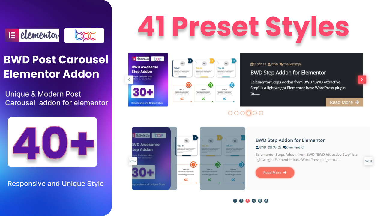 - Attractive Step – BWD Attractive Step is a lightweight Elementor base WordPress plugin to add an attractive Step to your website. There are 30+ unique preset designs that look awesome.