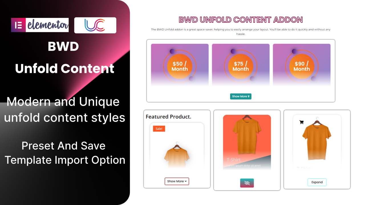 - Unfold Content – Unfold Content is a lightweight Elementor-based WordPress plugin to add an attractive Unfold section to your website.