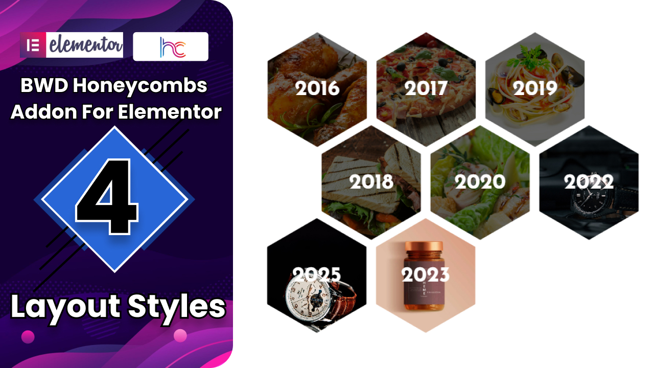 - Honeycombs – BWD Honeycombs Elementor Addon is a versatile plugin designed to enhance the functionality of the Elementor page builder by providing a collection of stunning hexagonal-shaped content modules.