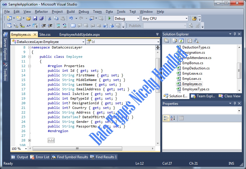 A sample web application has also been provided that is using the generated code. In this application one form (for employees) has been created. This app uses the generated data access layer without modifying a single line in the generated code. You can download the sample application for free from GitHub repo.Generated Code: