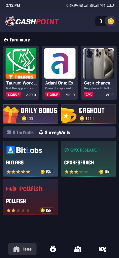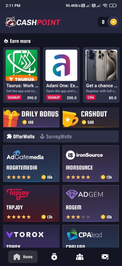 CashPoint – Is a Good Looking Offerwall Offers & Servey App That Allow Users to complete Serveys and Offers to earn money.