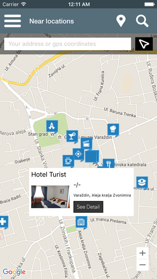 - Near locations search, will detect your location and find locations near you (50km), you can also enter address manually to detect near address