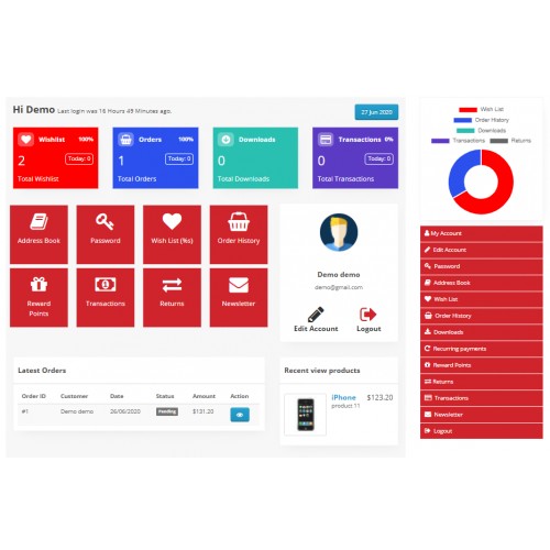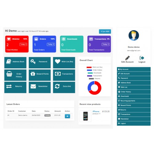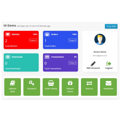Client dashboard is powerful tool to customize the default account page.This extension makes the account page attractive,unique.This extension is fully responsive on all devices.It is easy to use and manageable by admin panel.We have provide three different layouts which make login page good looking.we have also provide the Import demo option which import all the demo settings which is really helpful.It is full of many more features.