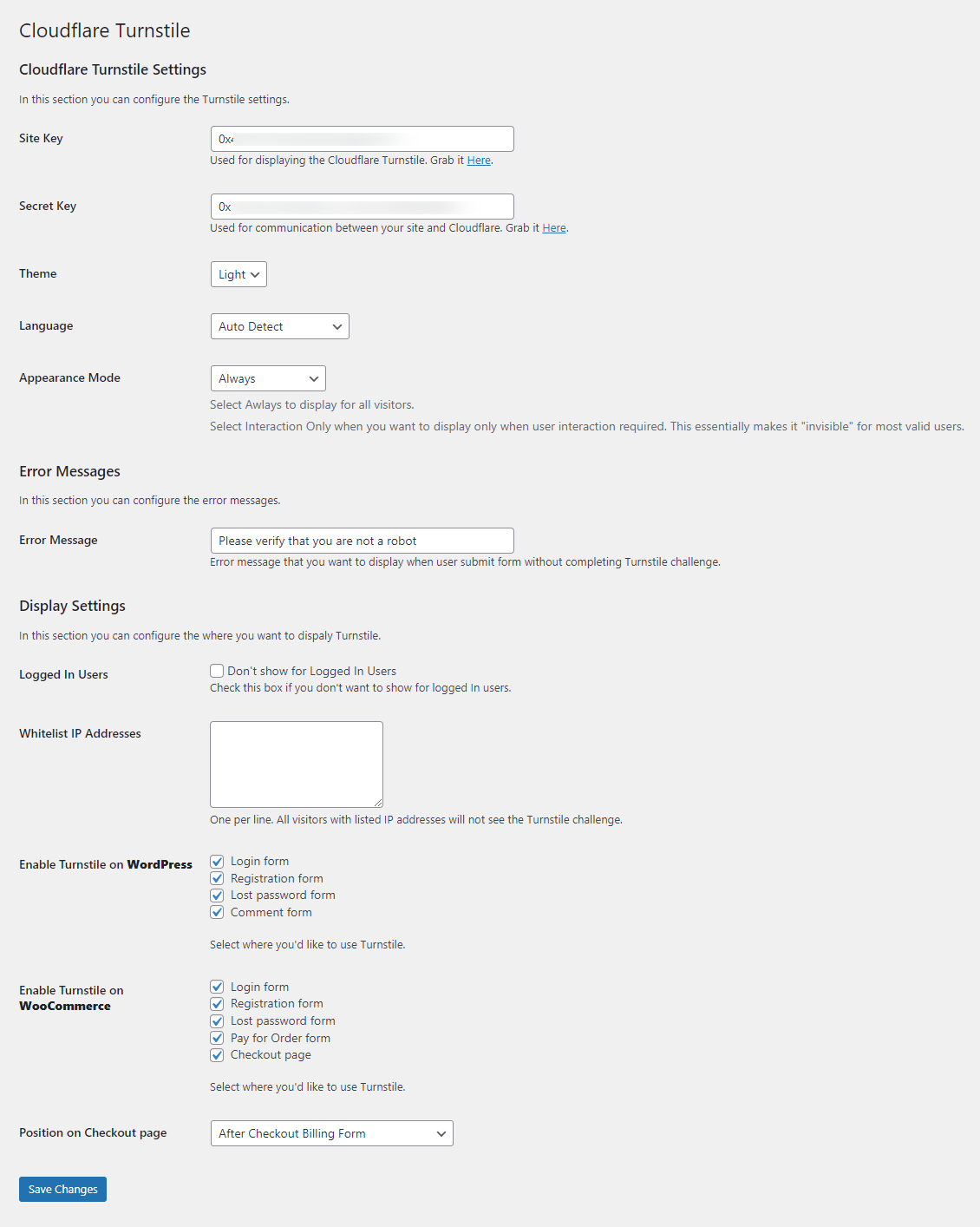 - Add Cloudflare Captcha on WooCommerce Checkout page with different position.