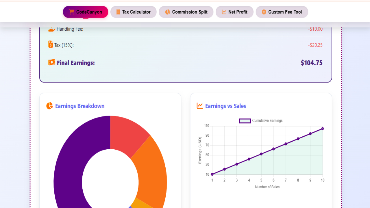 Use Case: Authors can estimate profits for individual items, plan pricing strategies, or forecast earnings for multiple sales, helping optimize their CodeCanyon business.