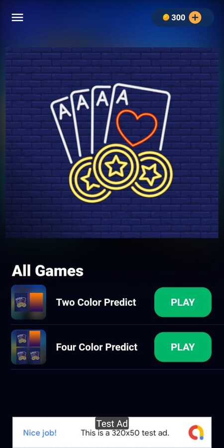 The Color Prediction games offer a variety of games; the most recent version offers two variations: 1) Two Color Prediction 2) Four Card Prediction: Pick any card, and if it matches the color on the display, you win the prize.