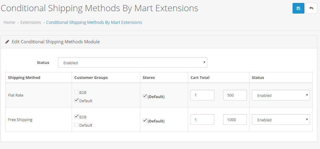 Features:- You can set the Minimum and Maximum amount for cart total to show the Shipping method.