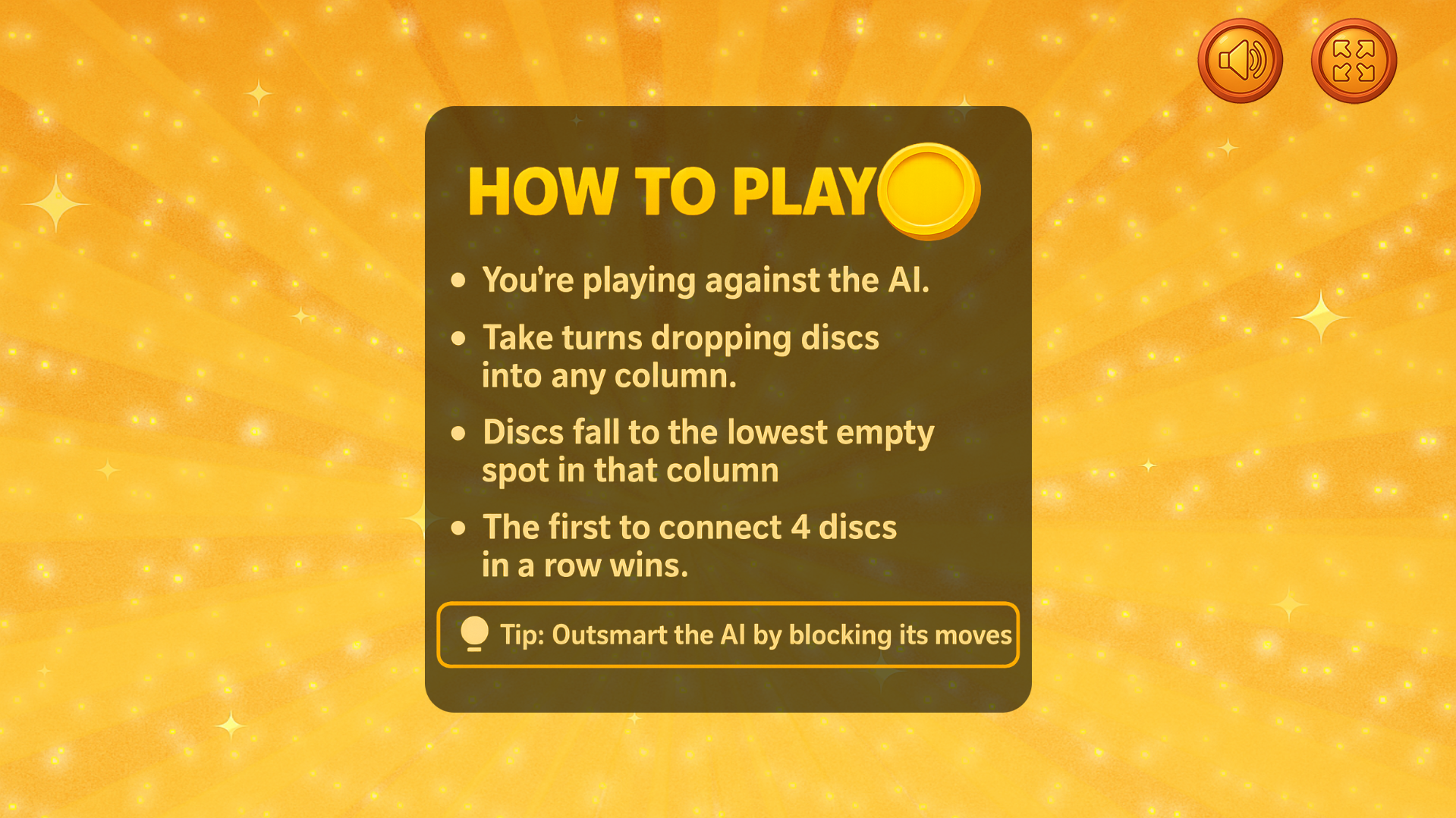 Connect 4 Online is a modern version of the classic strategy game. The player competes against a smart AI opponent in a grid-based challenge. The game includes two difficulty modes, animated visuals, and full support for both desktop and mobile devices.