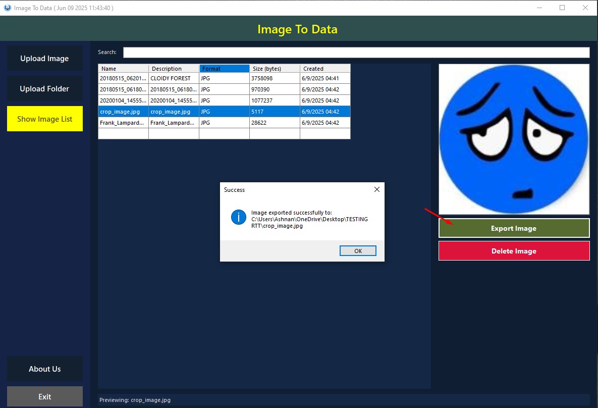 ImageToData_Setup.exeto install the application - Open the app and choose Upload Image or Upload Folder