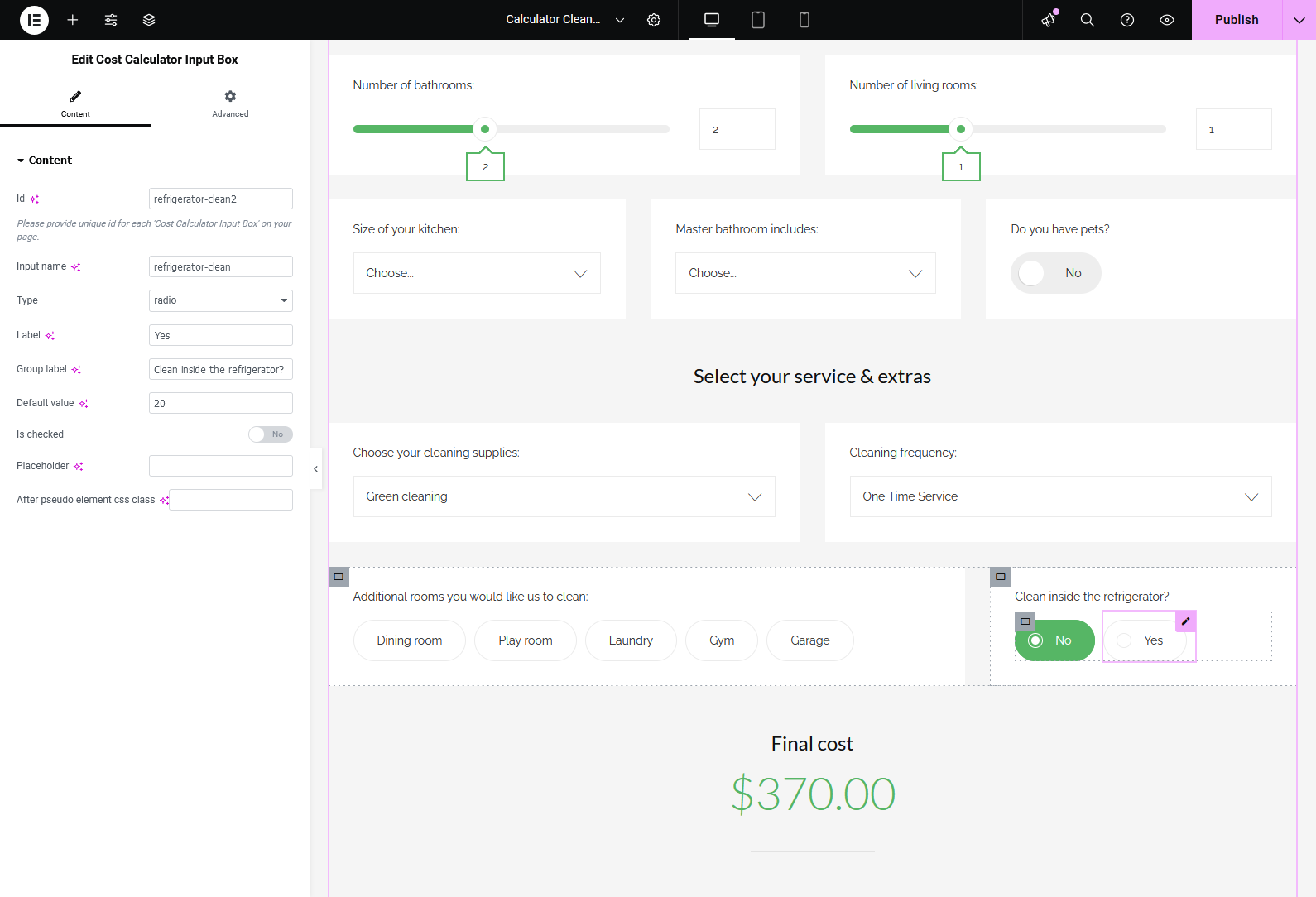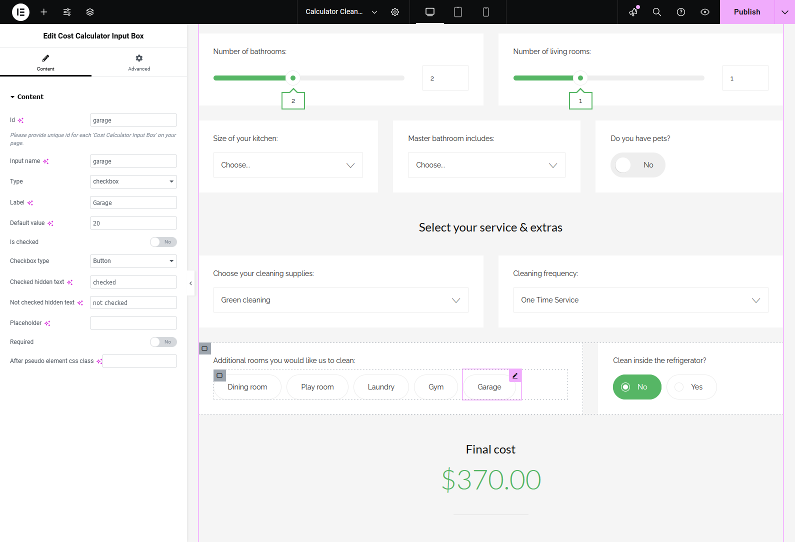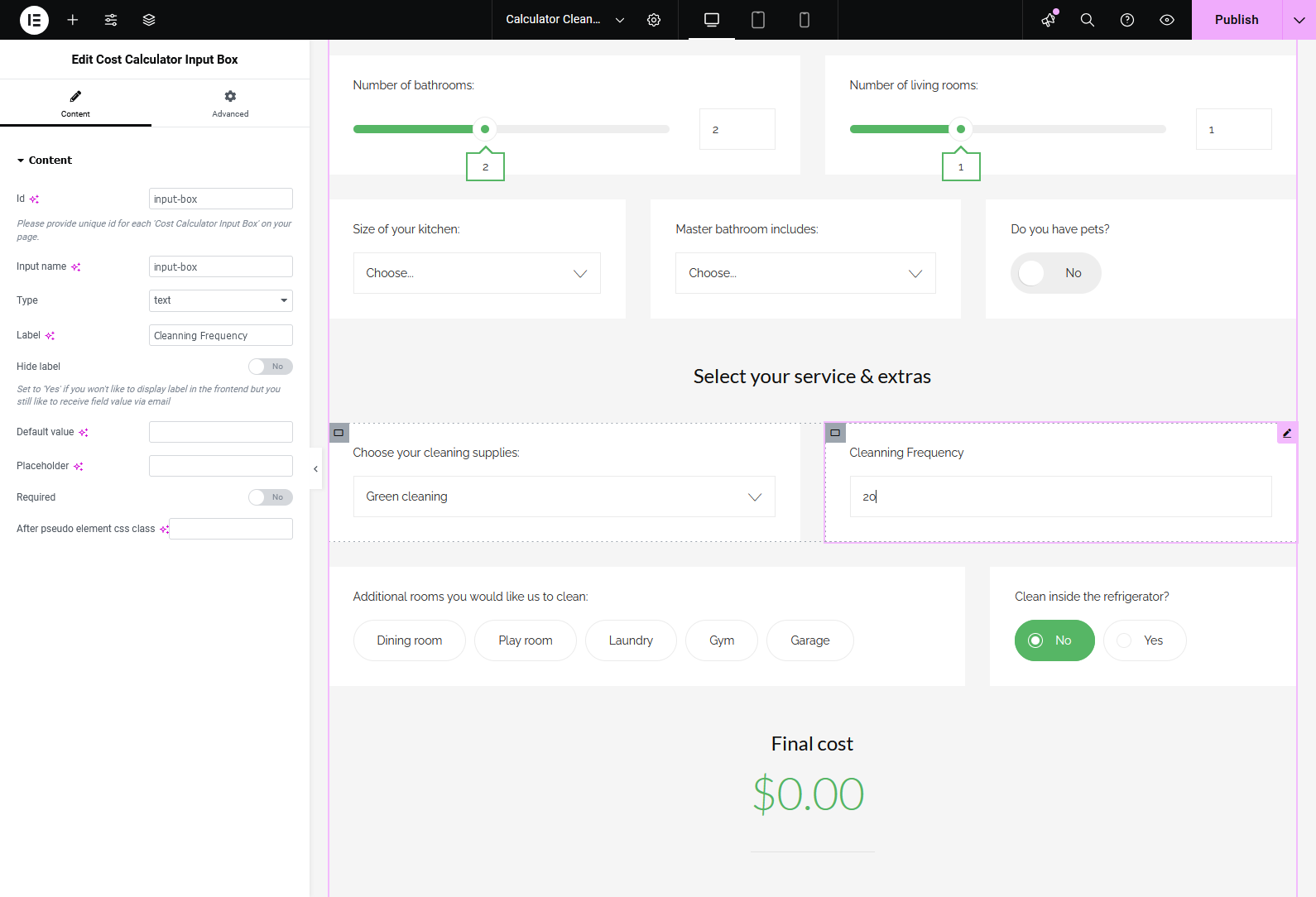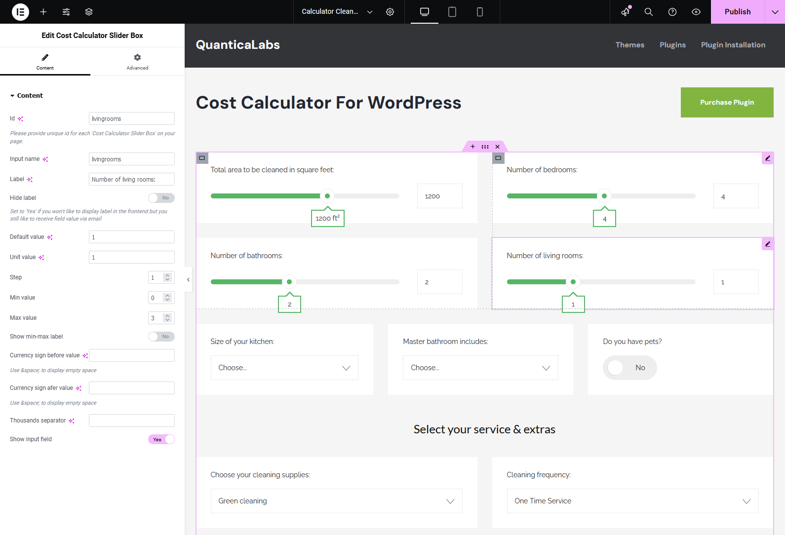 If you’re using the Elementor Website Builder for WordPress, the Cost Calculator plugin offers dedicated integration with 8 custom widgets: Cost Calculator, Form Container, Dropdown Box, Slider Box, Input Box, Switch Box, Summary Box, and Contact Box. These widgets allow you to visually build and customize calculator forms directly inside Elementor. See it in action.