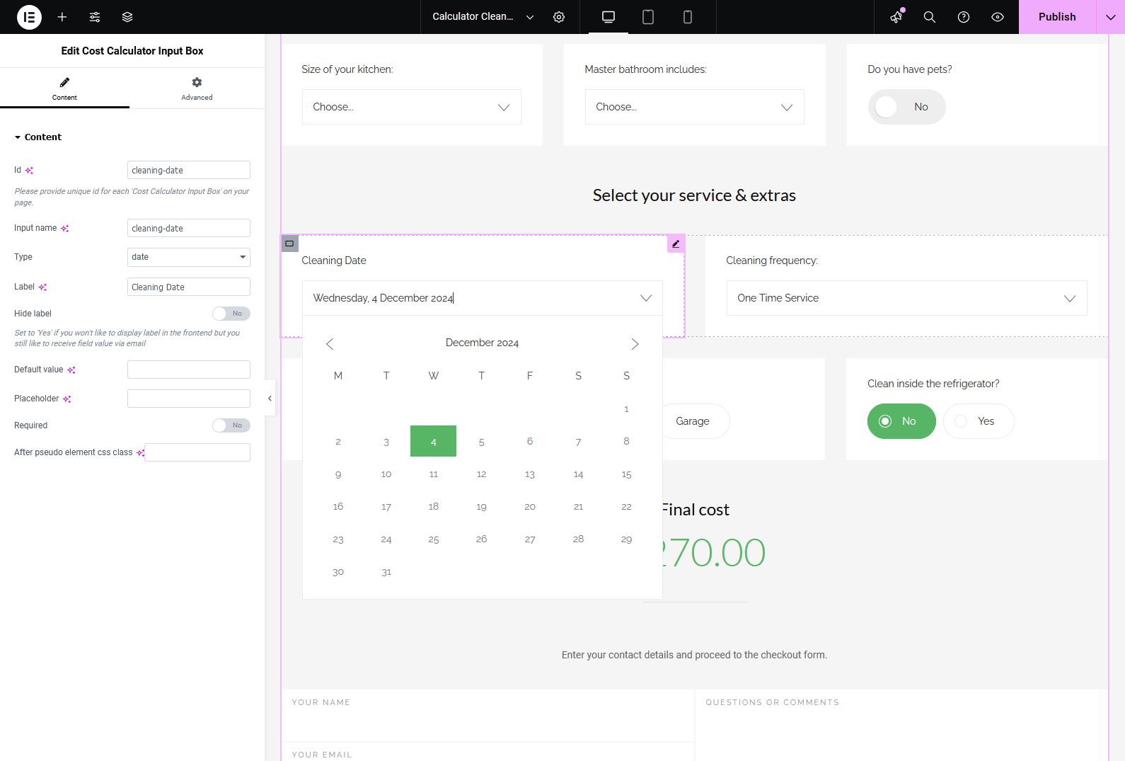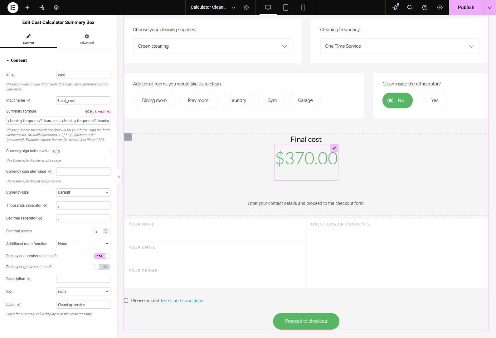 Built-in Cost Calculator Form Builder