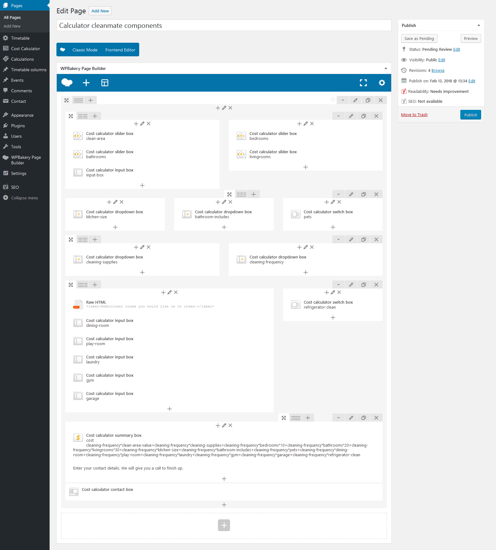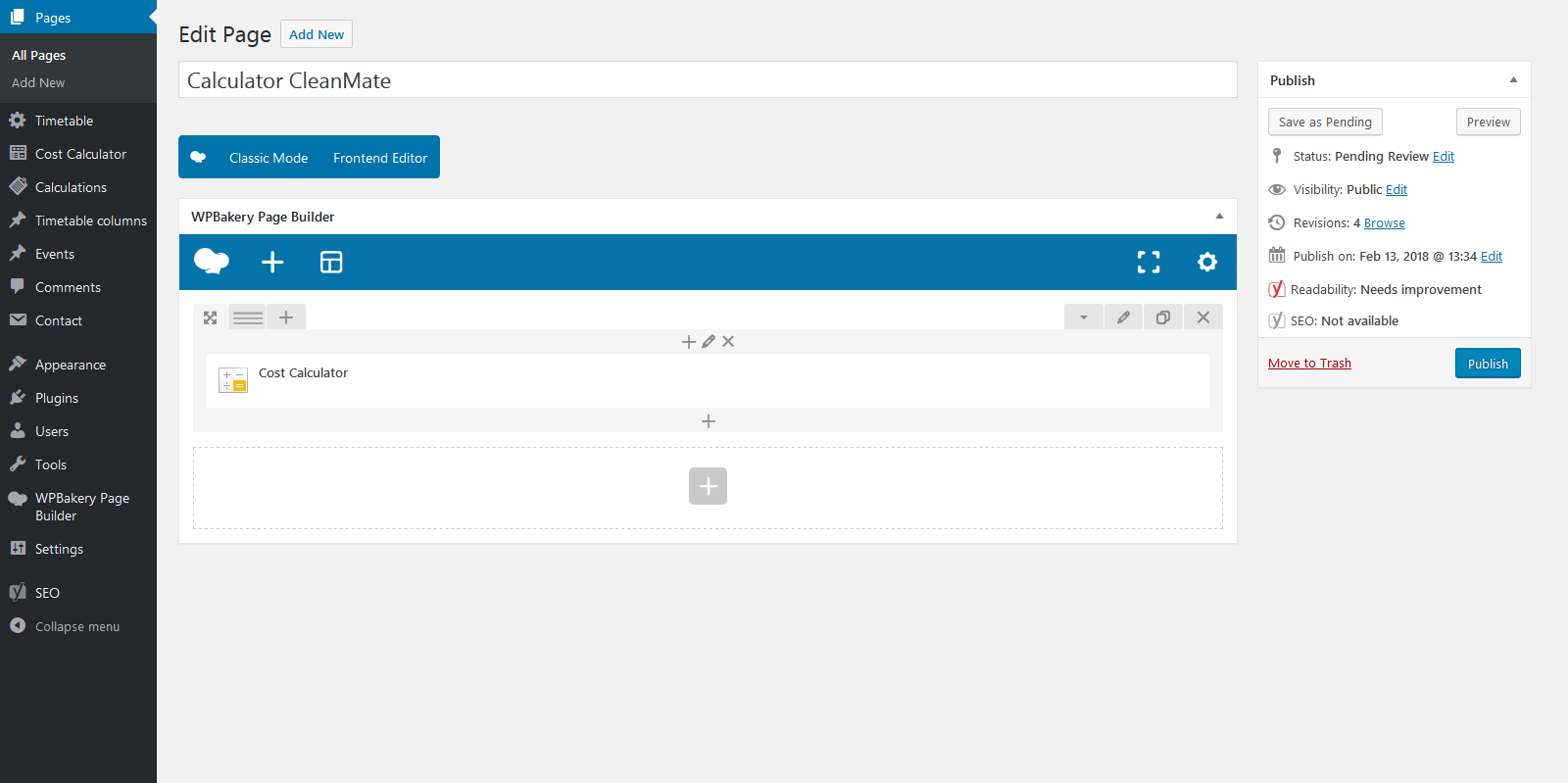 The Cost Calculator plugin integrates seamlessly with WPBakery Page Builder, allowing you to embed and configure calculation forms within WPBakery layouts. WPBakery is optional — all forms can be created using the built-in form builder, making the plugin fully functional even without any page builder.