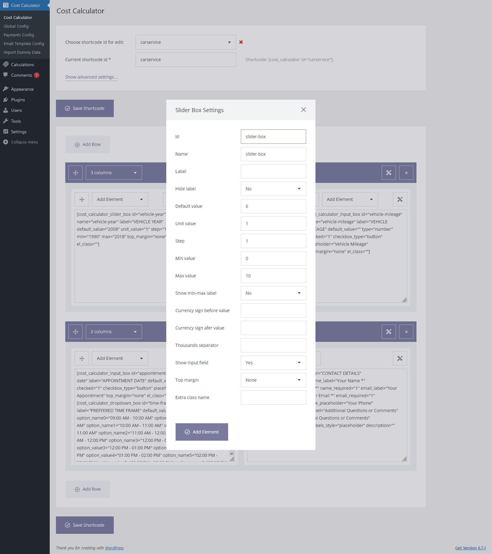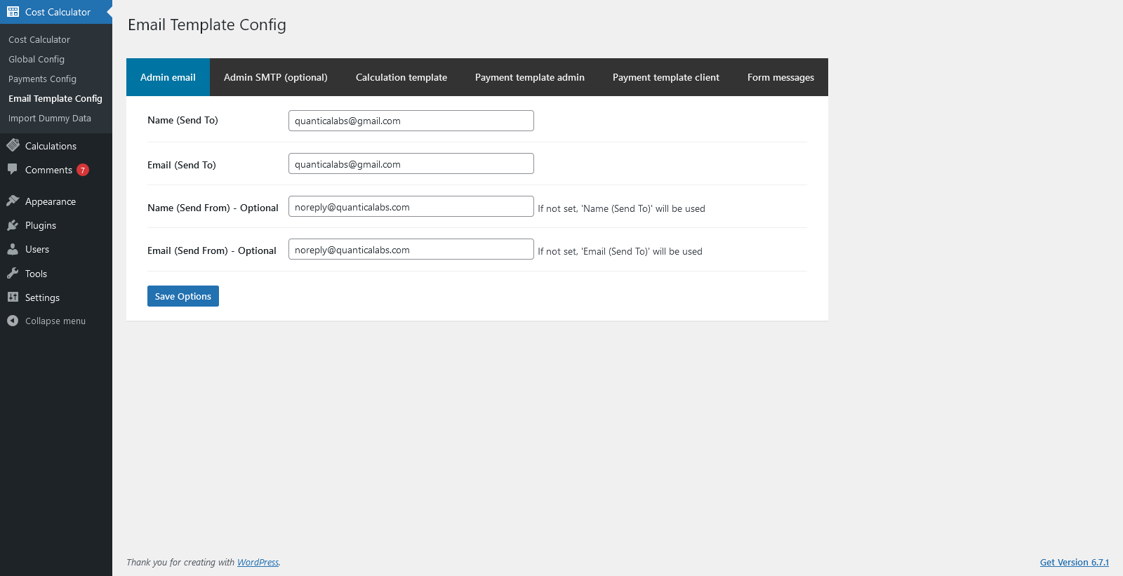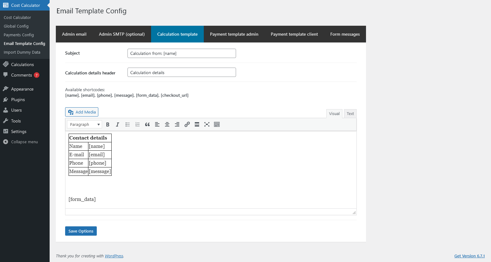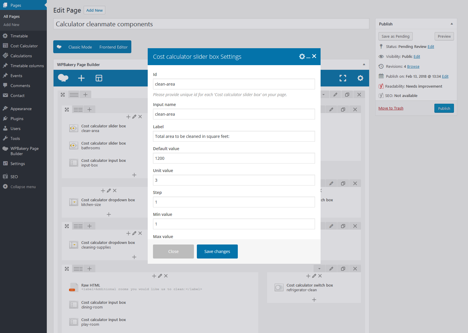 Admin Features of Cost Calculator for WordPress