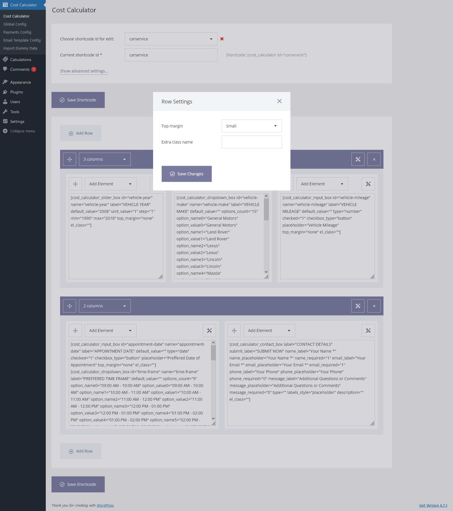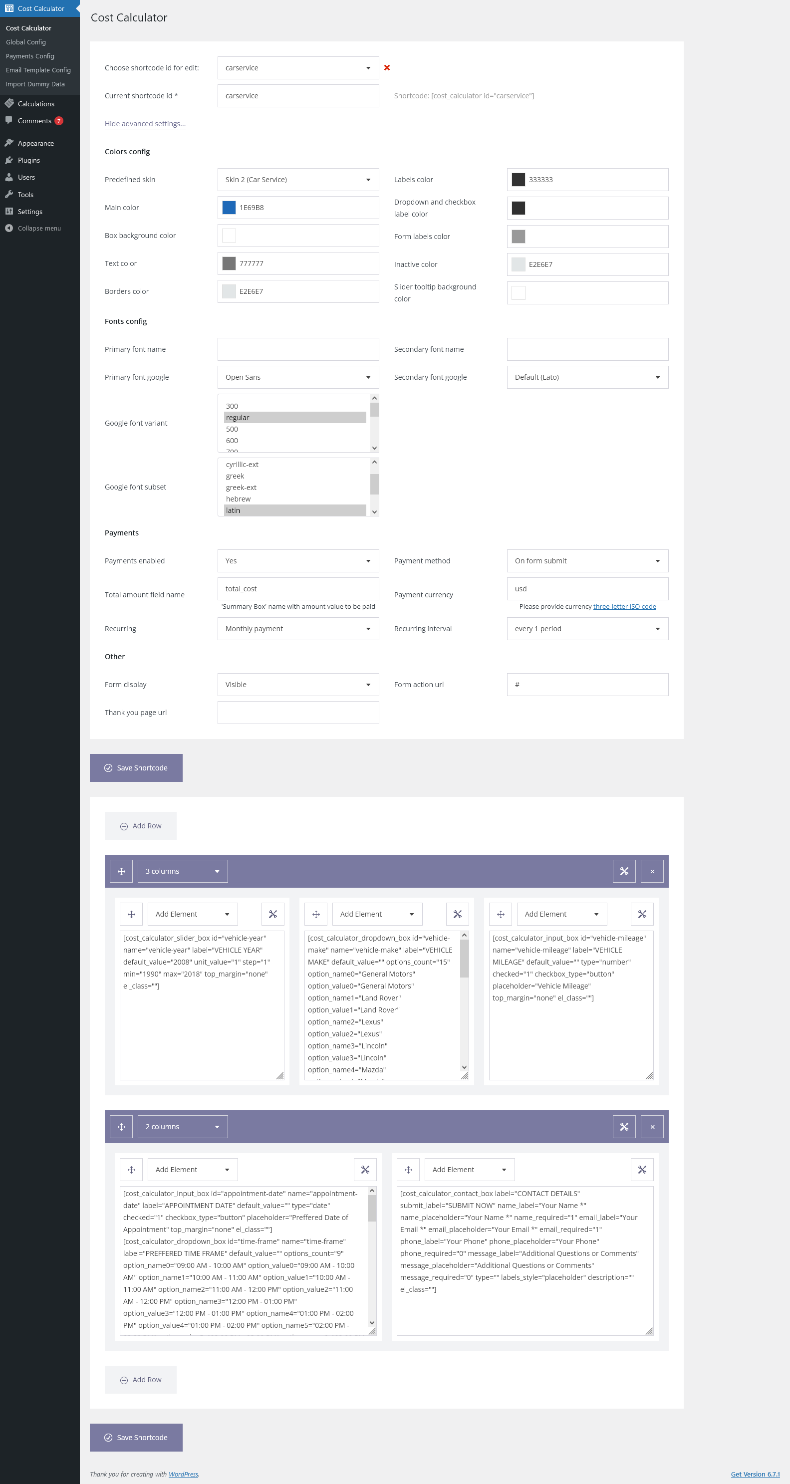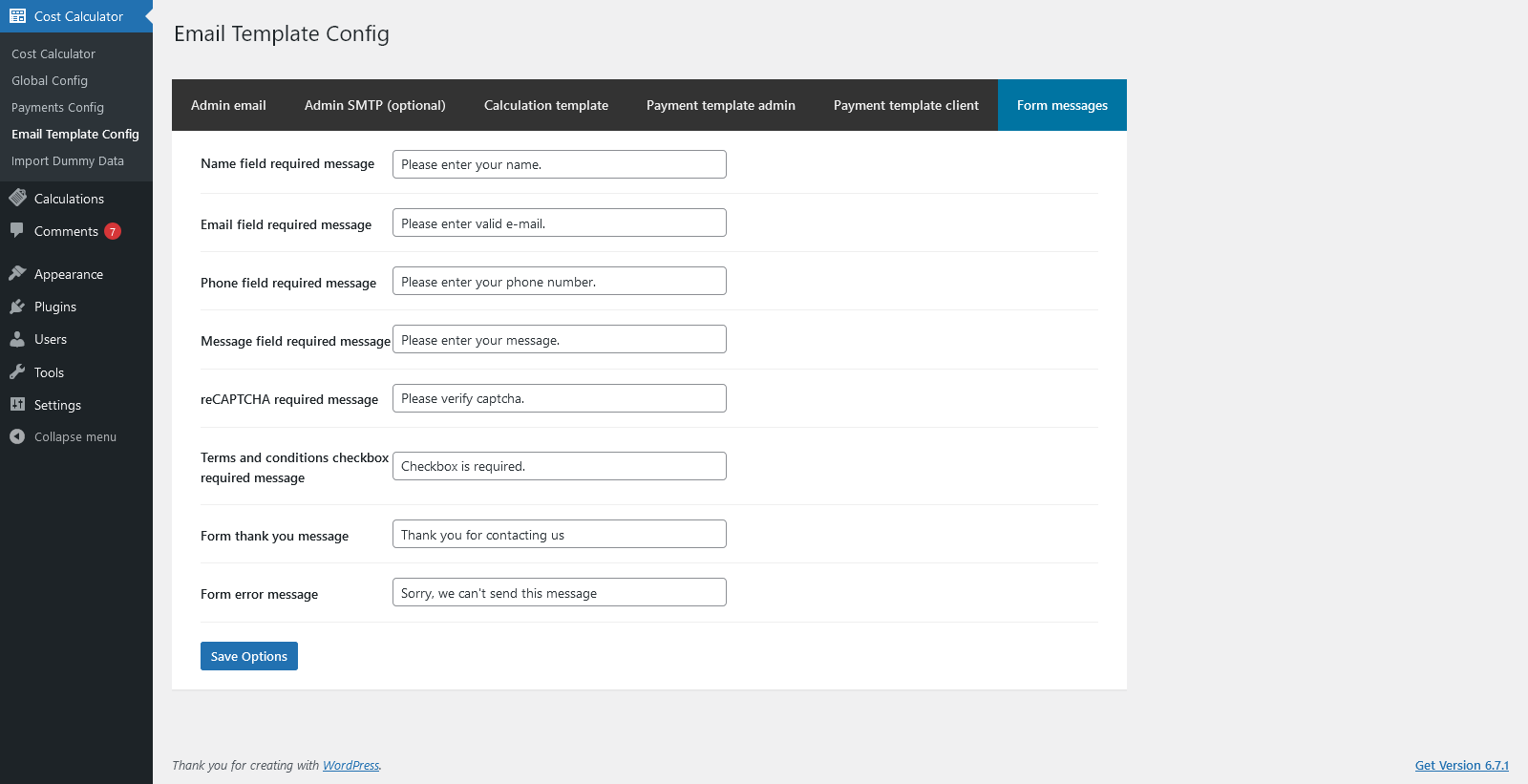 Admin Features of Cost Calculator for WordPress