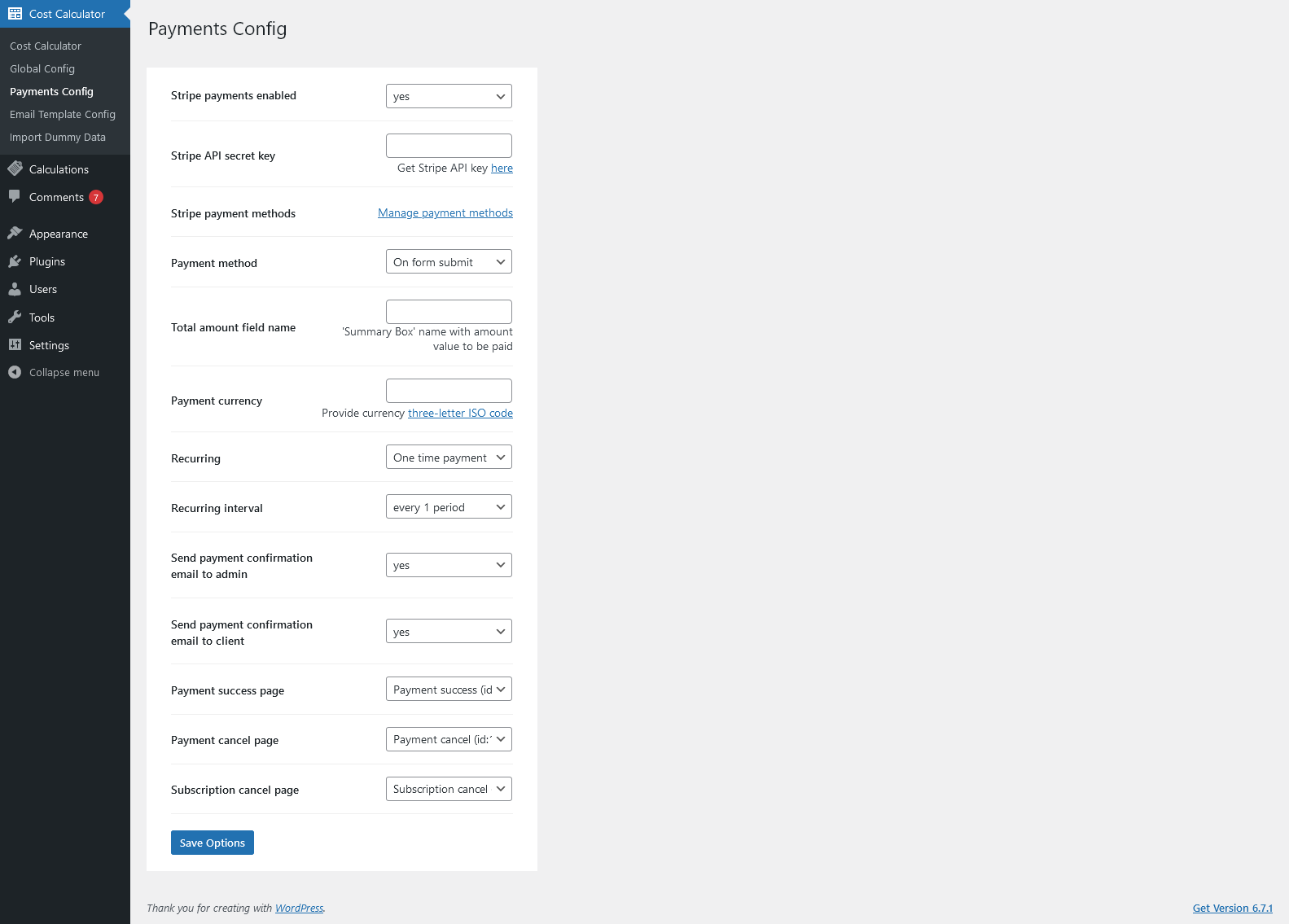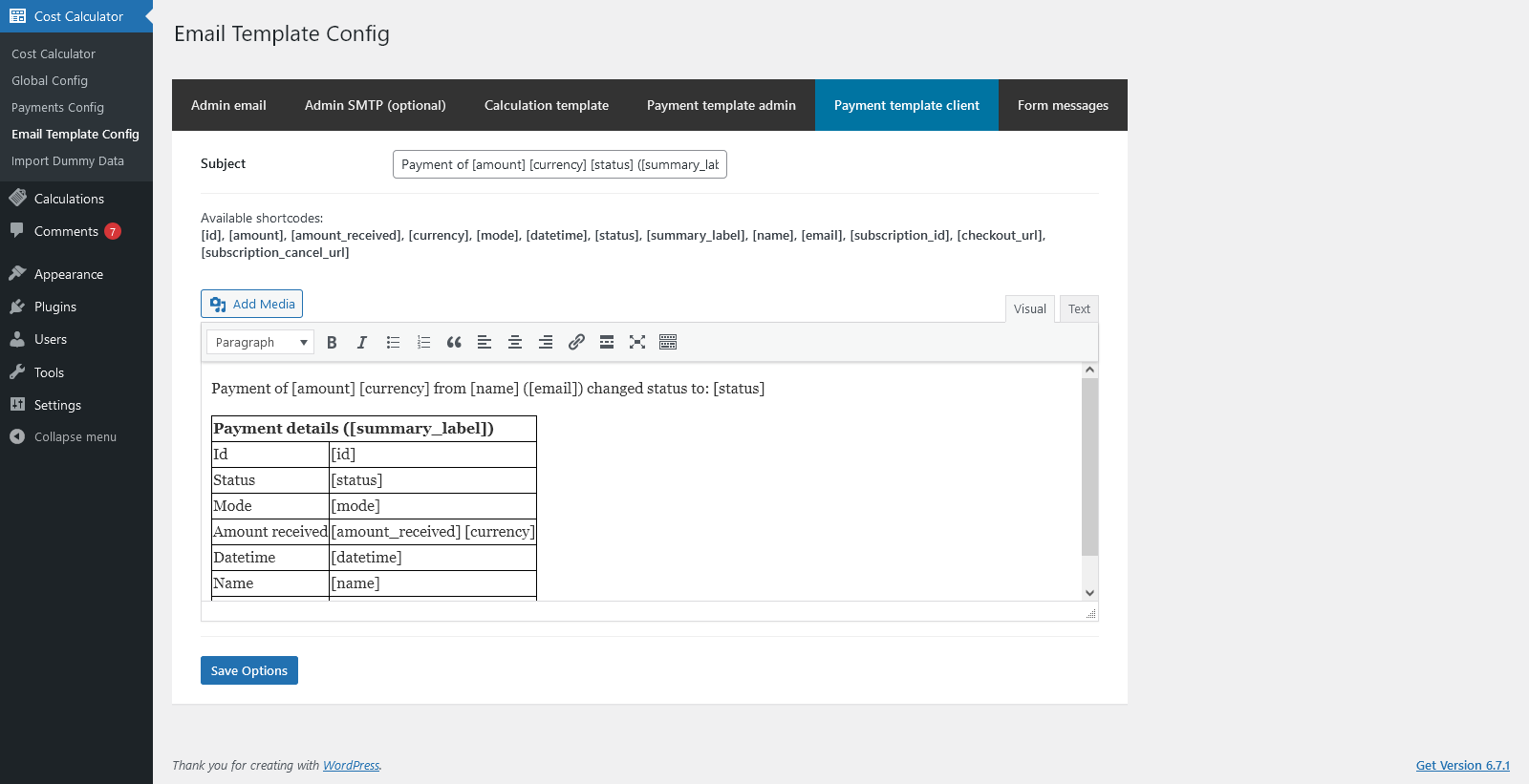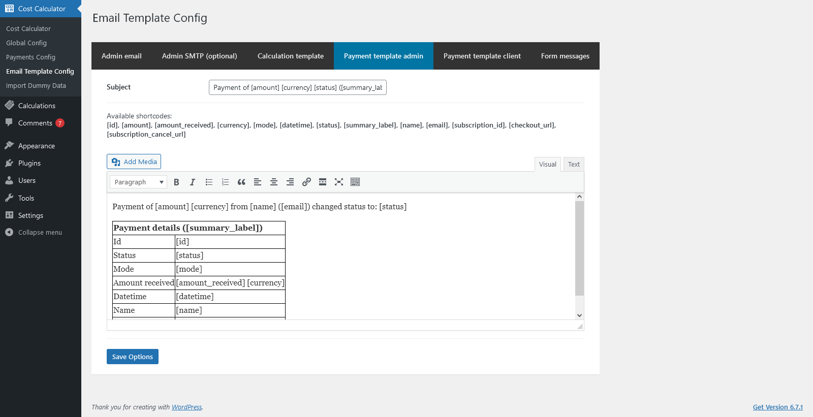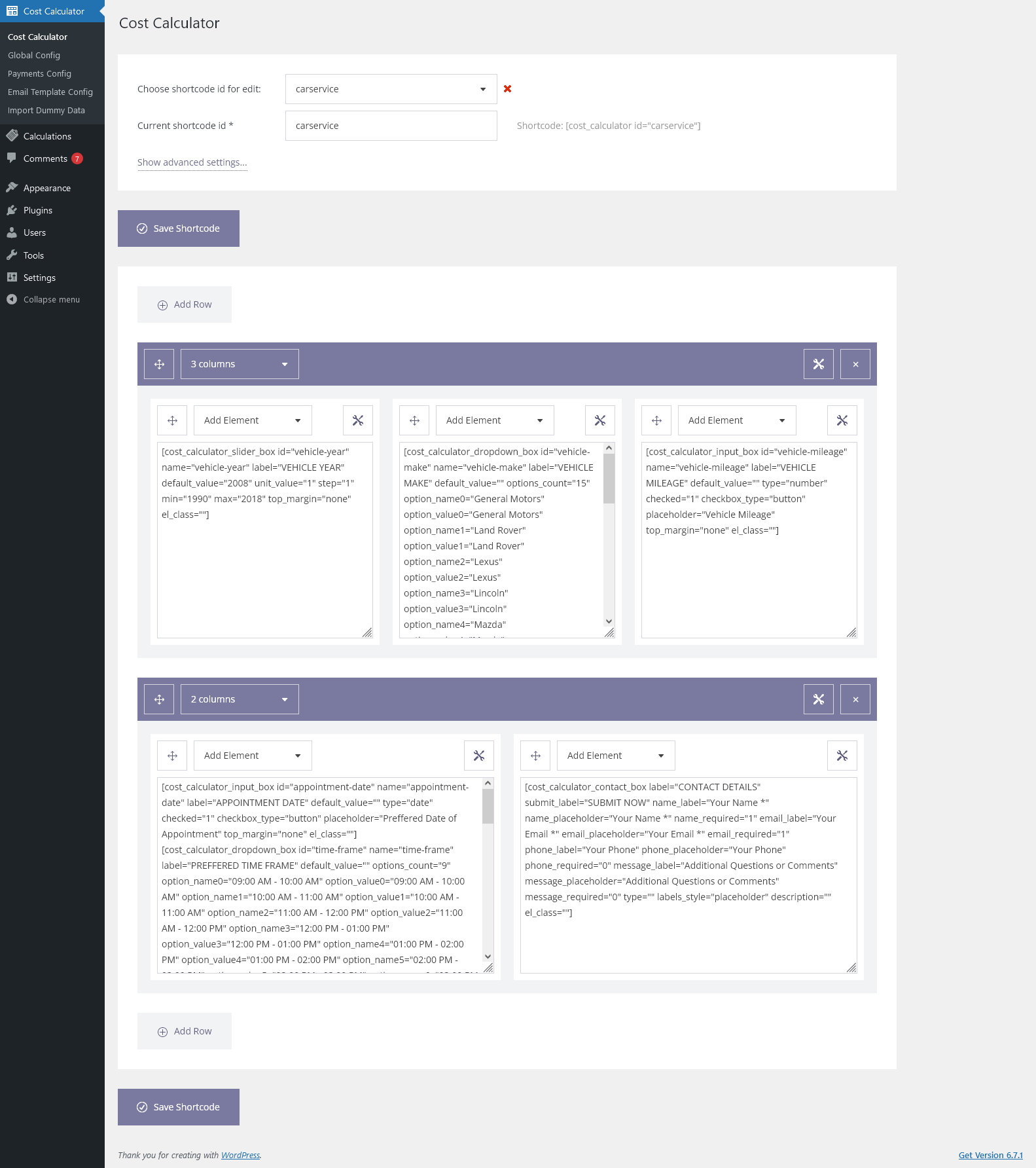 Admin Features of Cost Calculator for WordPress