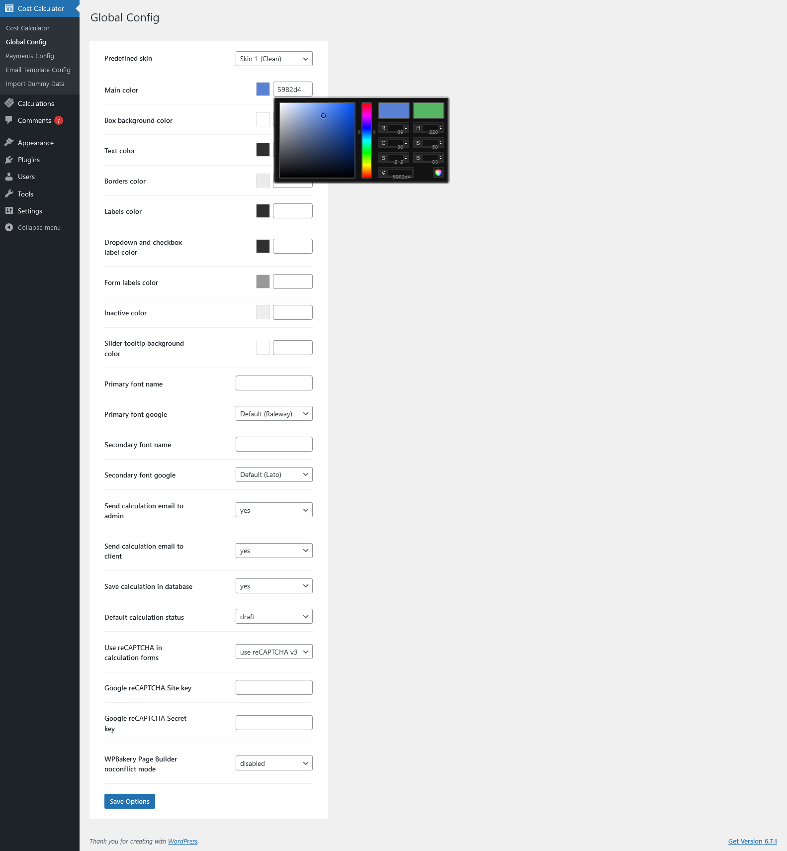 - Define whether to use reCaptcha in calculation forms.