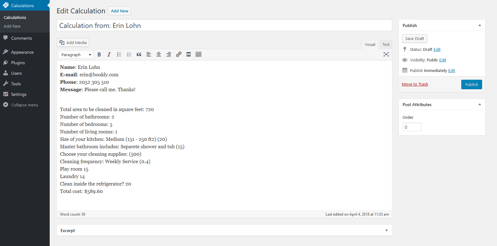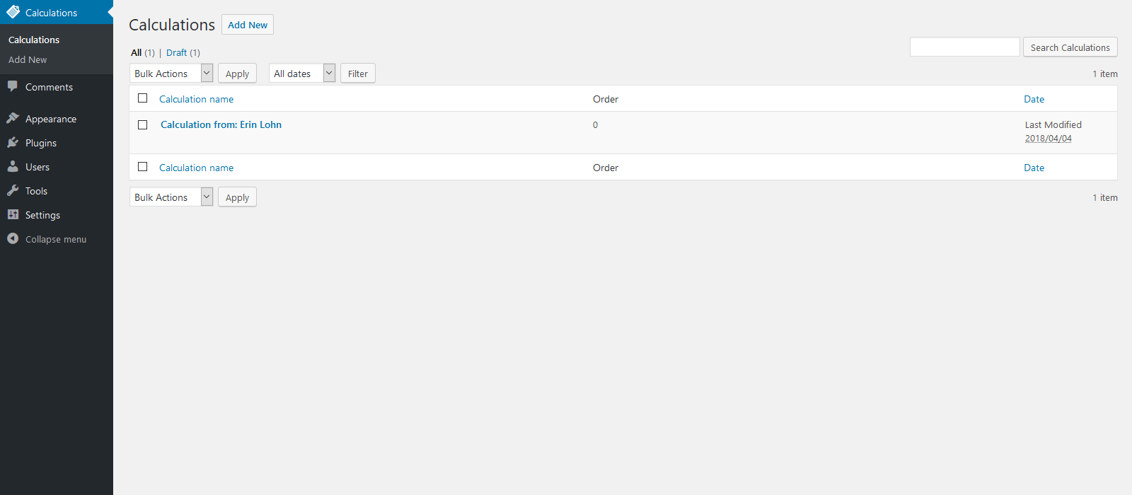 - Access to submitted calculations directly from the WordPress admin panel.