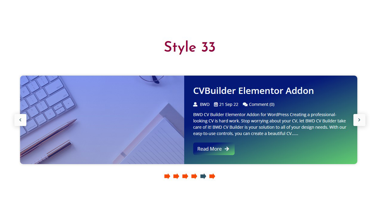 “Creative Post Carousel” is a lightweight Elementor-based WordPress plugin to add an attractive blog post carousel to your website without any coding knowledge. 40+ unique preset post-carousel designs look awesome. For Kind information, more than 100+ designs will be included very soon.